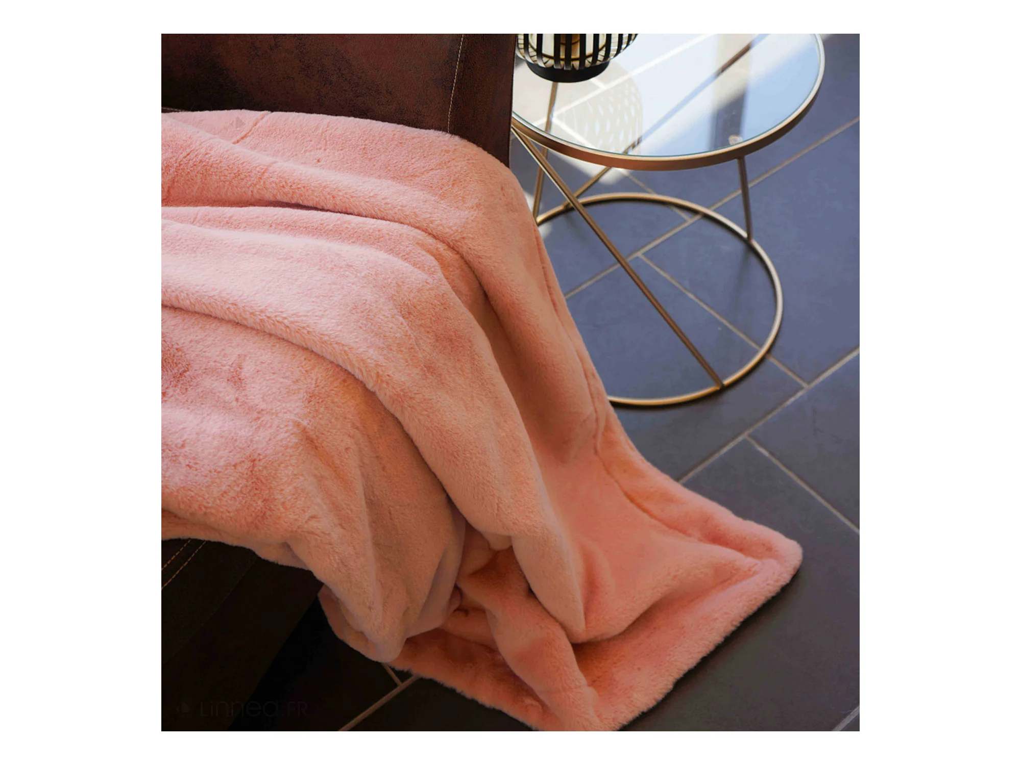 Plaid imitation fourrure 150x200 cm en polyester MELLOW rose thé