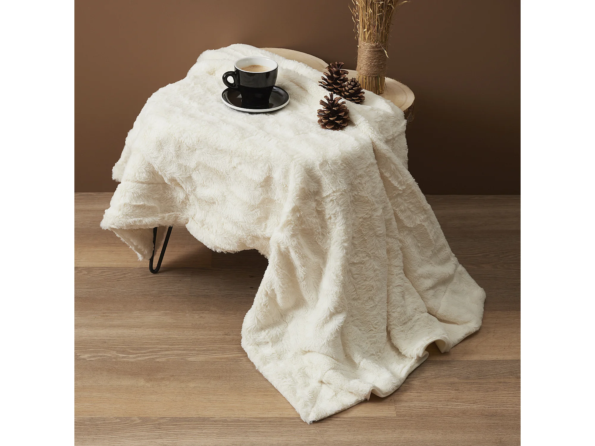 Plaid Imitation Fourrure A Anse Blanc 120x150cm Blanc