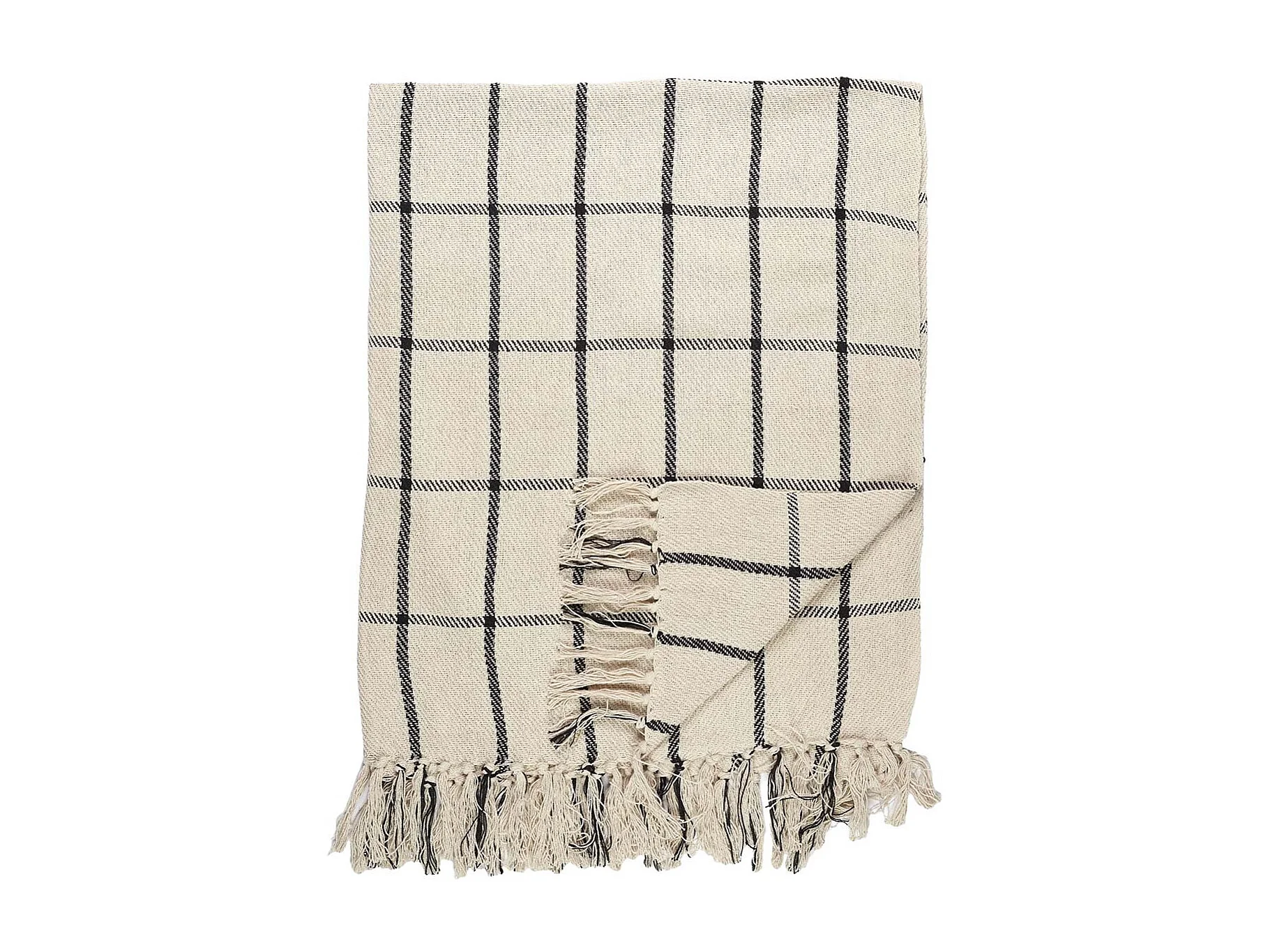 Plaid Jeté de Canapé 125x150cm Beige Imprimé Carreaux Noirs avec Franges - WAIKIKI