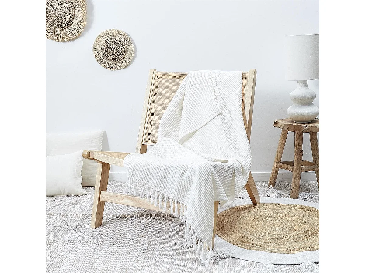 Plaid jeté de canapé 150x200cm style gaufré coloris ivoire