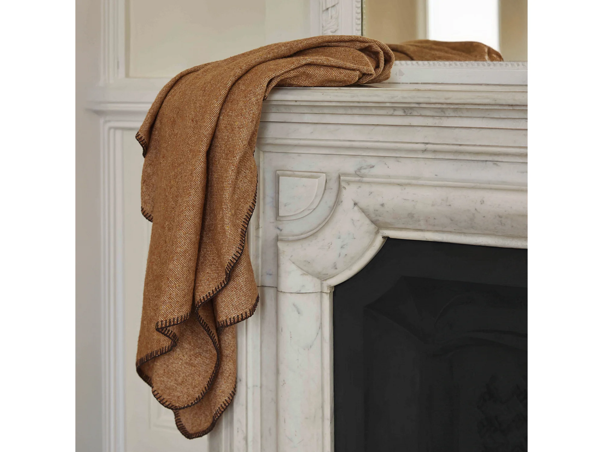 Plaid aspect mohair 100% polyester recyclé 70x180 cm HYGGE Marron caramel