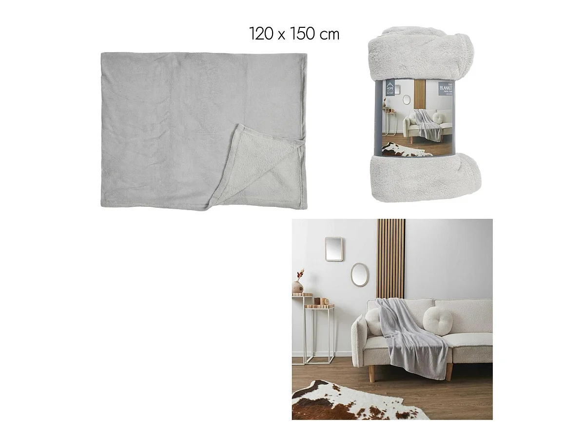 Plaid Microfibre Gris Clair 120x150cm, Doux Effet Sherpa, Lavable en Machine - OLIN