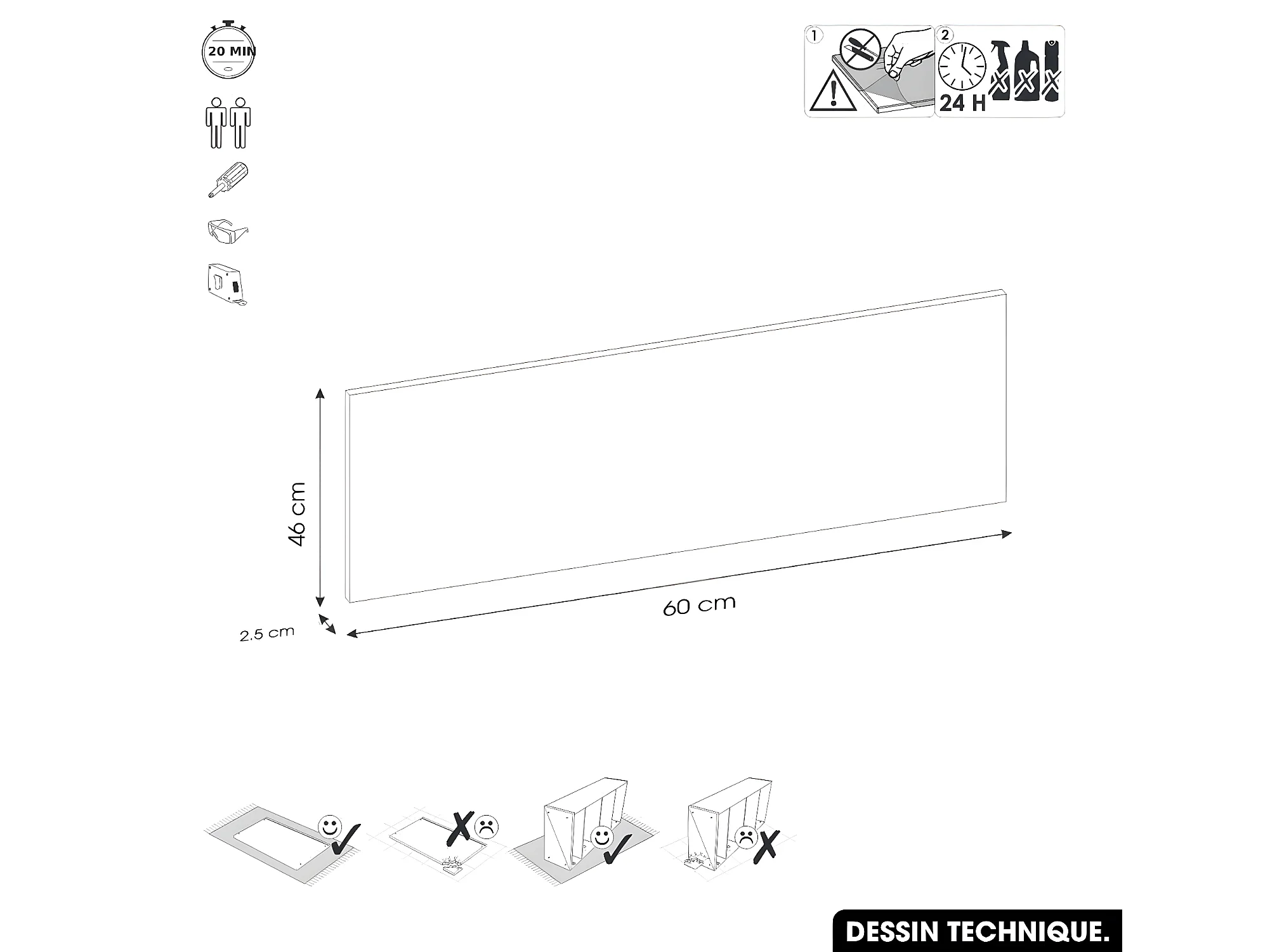 Plan de vasque en bois | GRIS DIAMANT | L.80 x P.47 x H.2,5