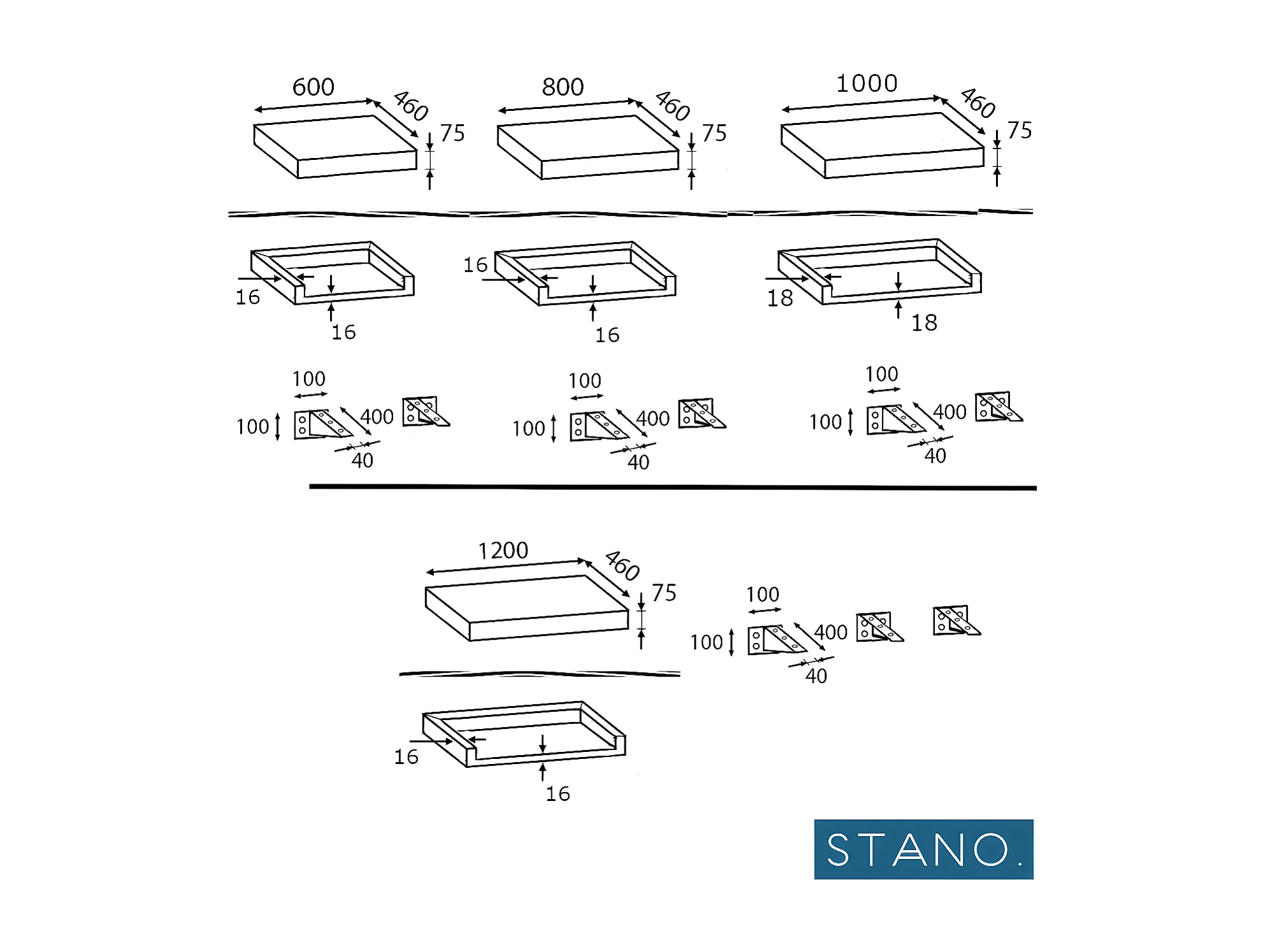 Plan suspendu pour vasque TOP noyer 120 x 46 cm