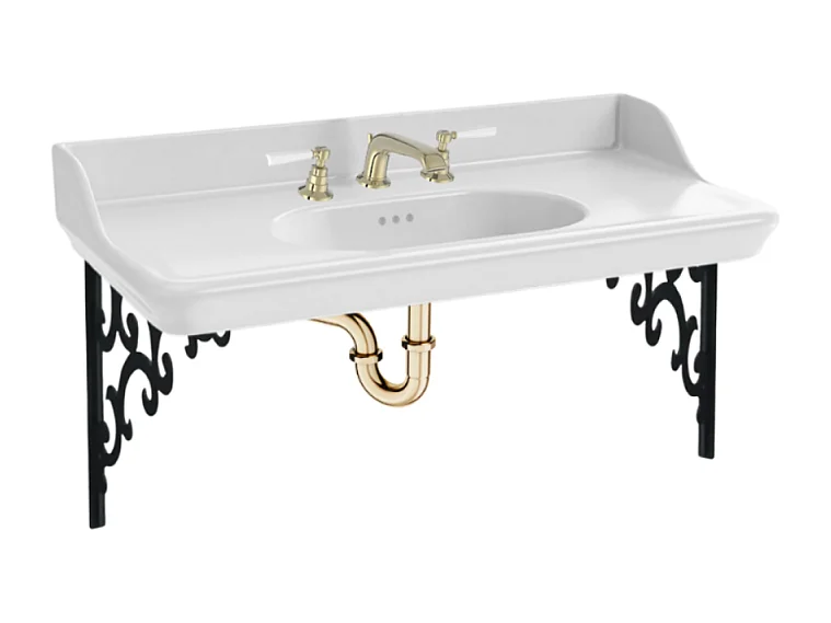 Pack plan vasque suspendu 3 trous JACOB DELAFON Cléo 1889 + mélangeur poignée or + siphon or