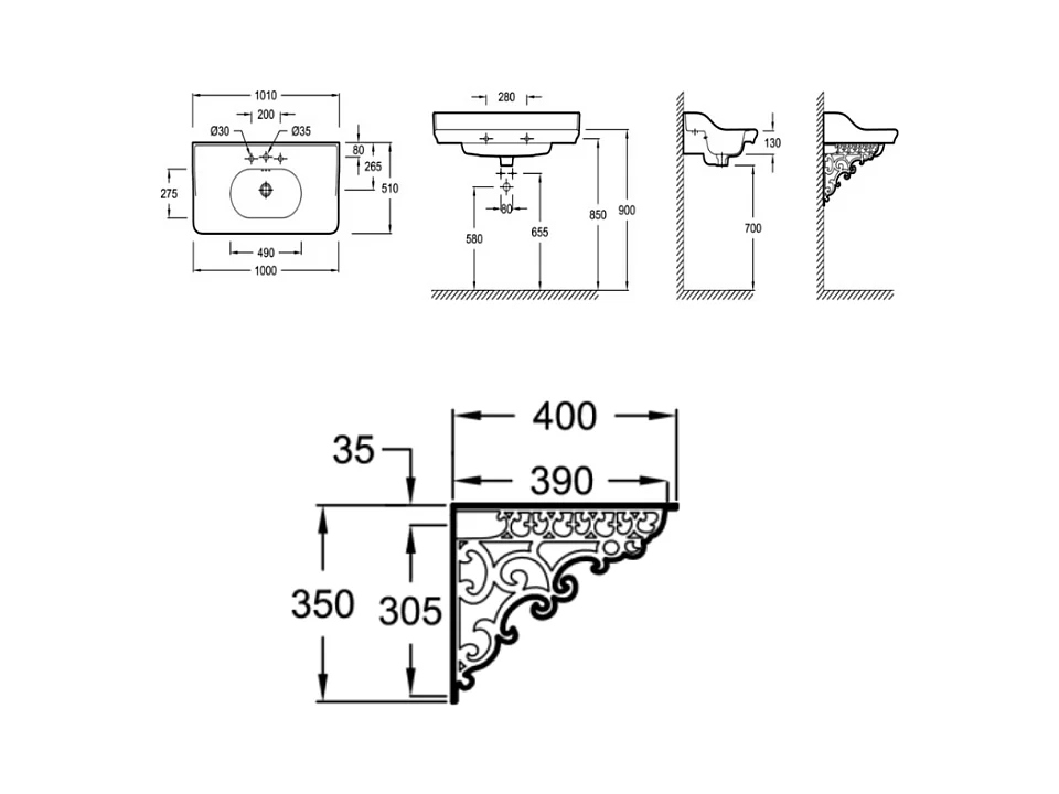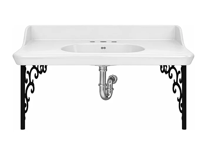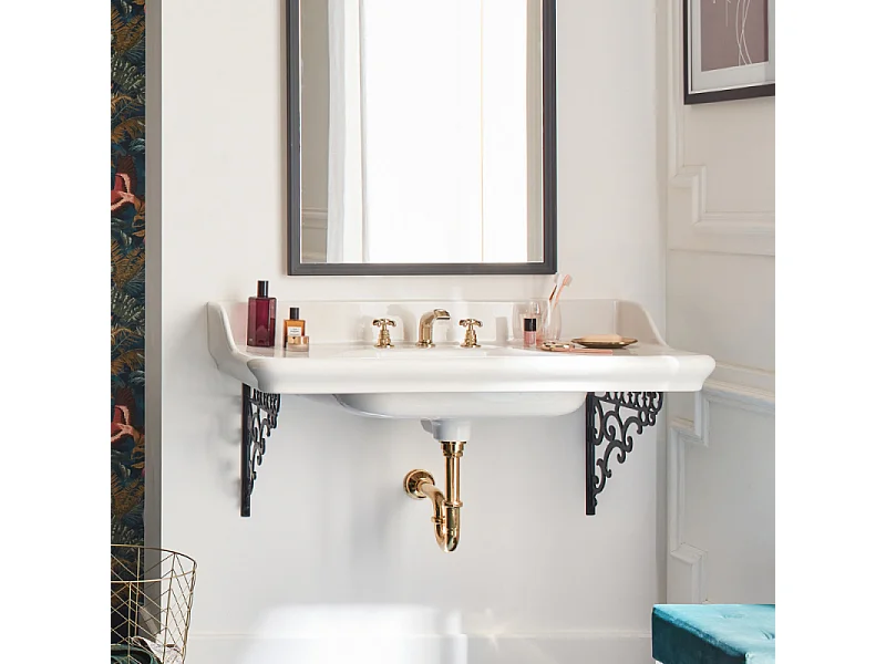 Plan vasque suspendu 3 trous JACOB DELAFON Cléo 1889 avec équerres métal noir + siphon chromé