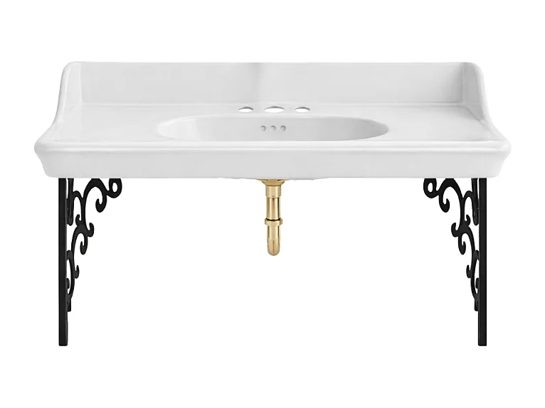 Plan vasque suspendu 3 trous JACOB DELAFON Cléo 1889 avec équerres métal noir + siphon or