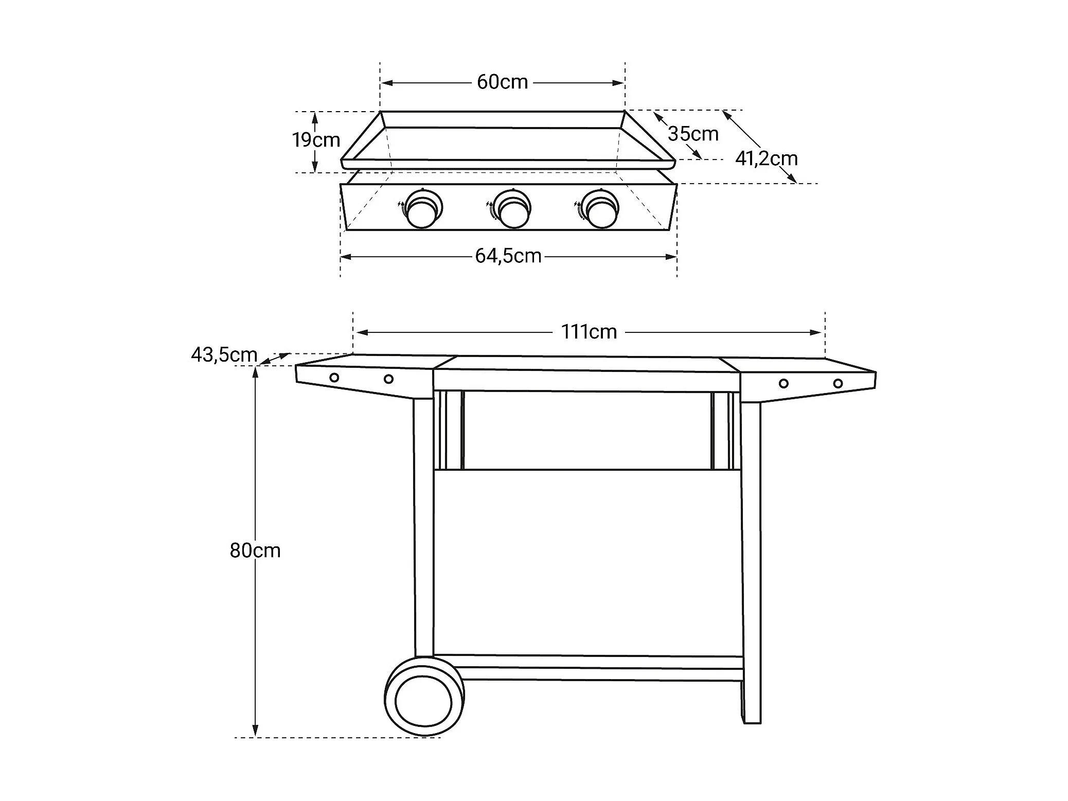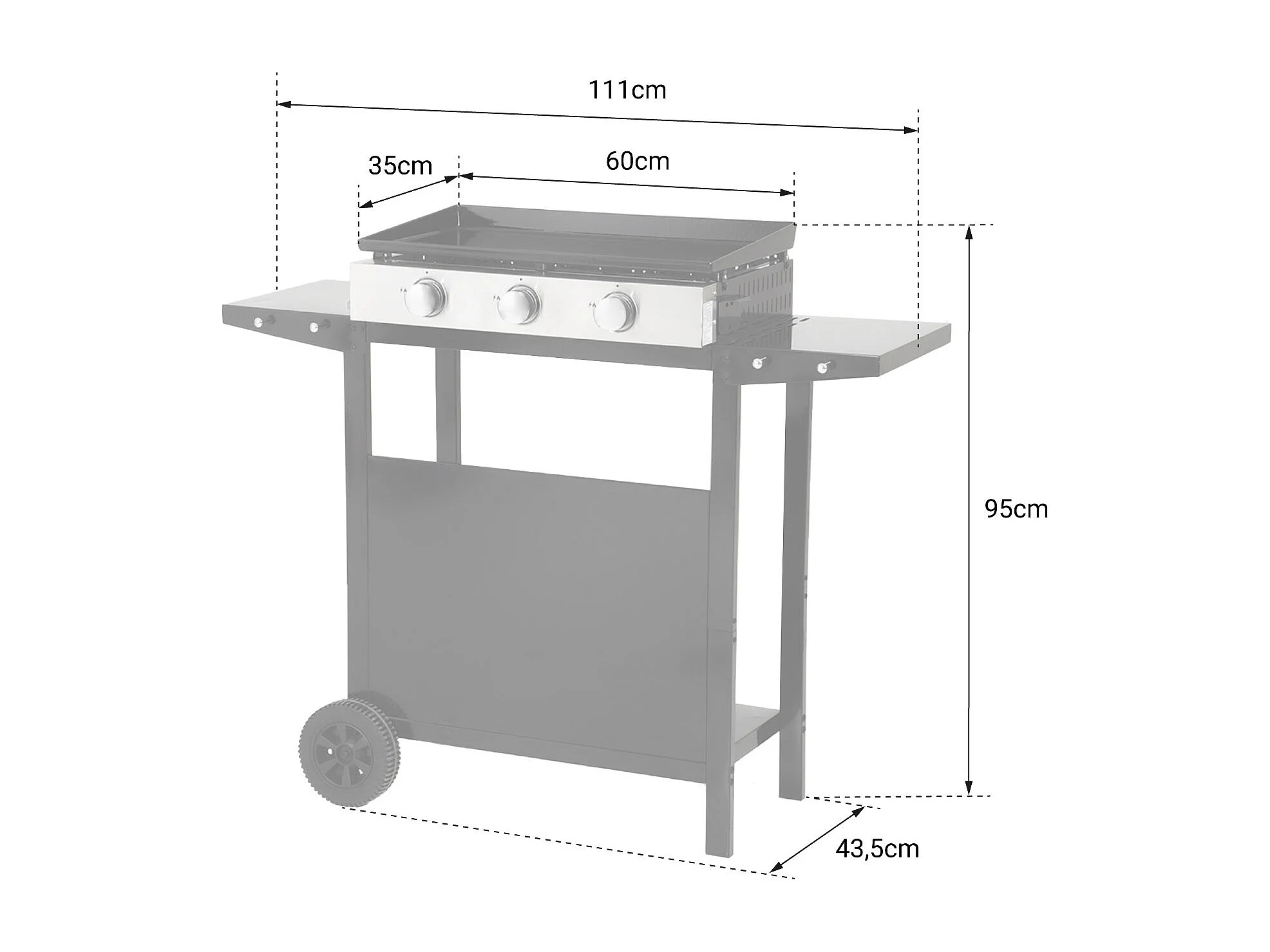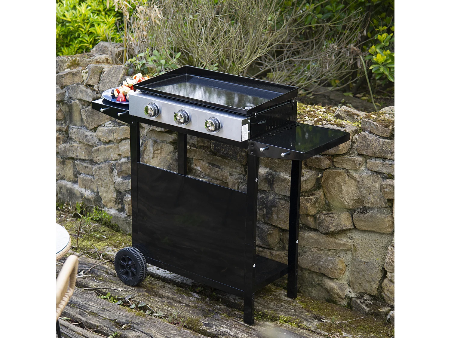 Plancha au gaz MÉRIDA 3 brûleurs + chariot