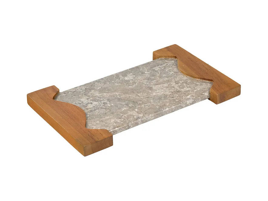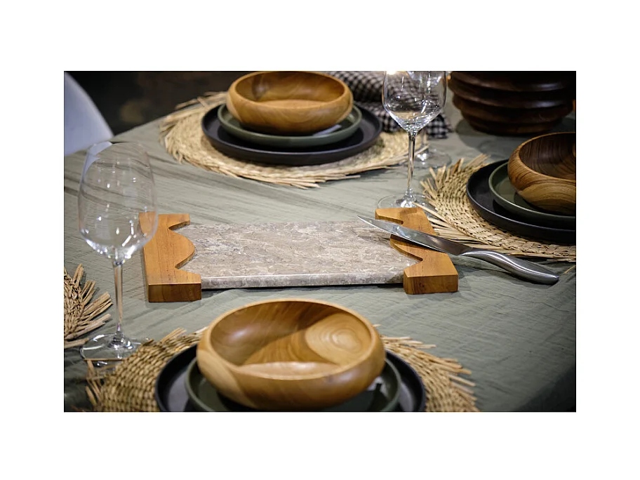 Planche à découper 38 cm en marbre beige et bois de teck – KAEL