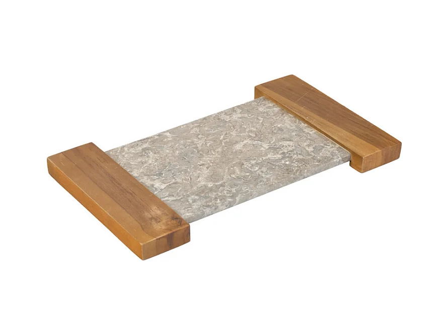 Planche à découper 38 cm en marbre gris et bois de teck - ZEPHYR
