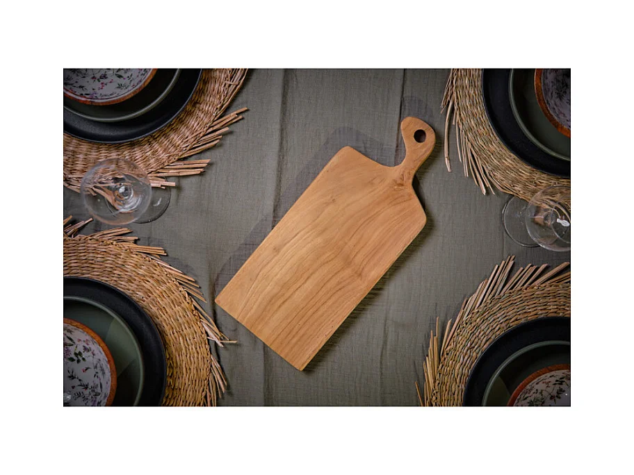 Planche à découper rectangle 40 cm en bois de teck avec manche – MAVA