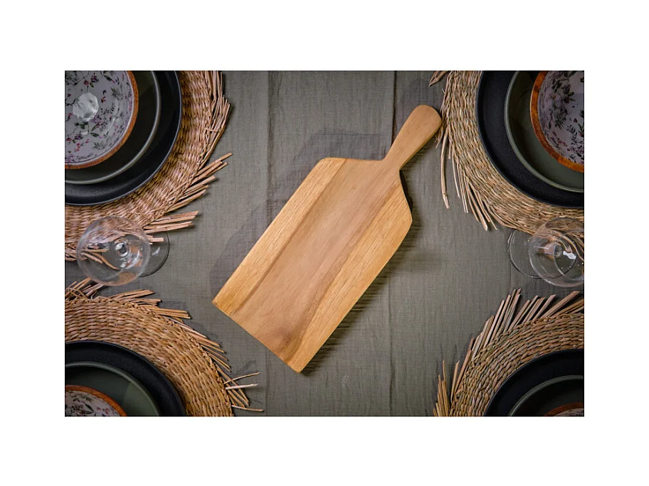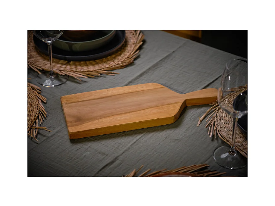 Planche à découper rectangle 40 cm en bois de teck avec manche – MAVA