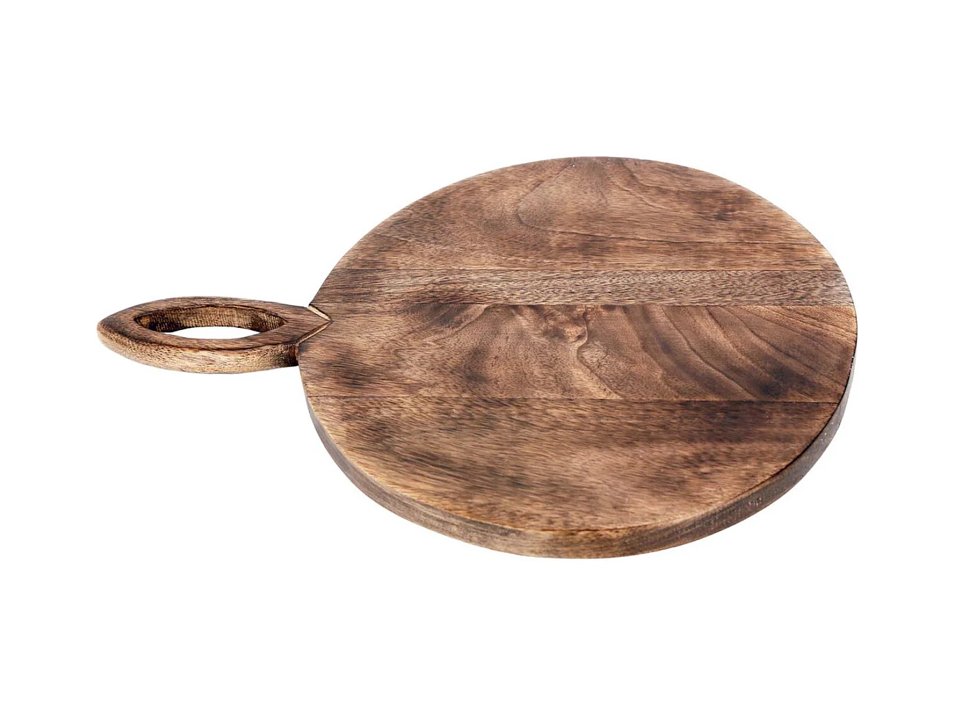 Planche à découper ronde 18 cm en bois de teck avec manche – EKIA