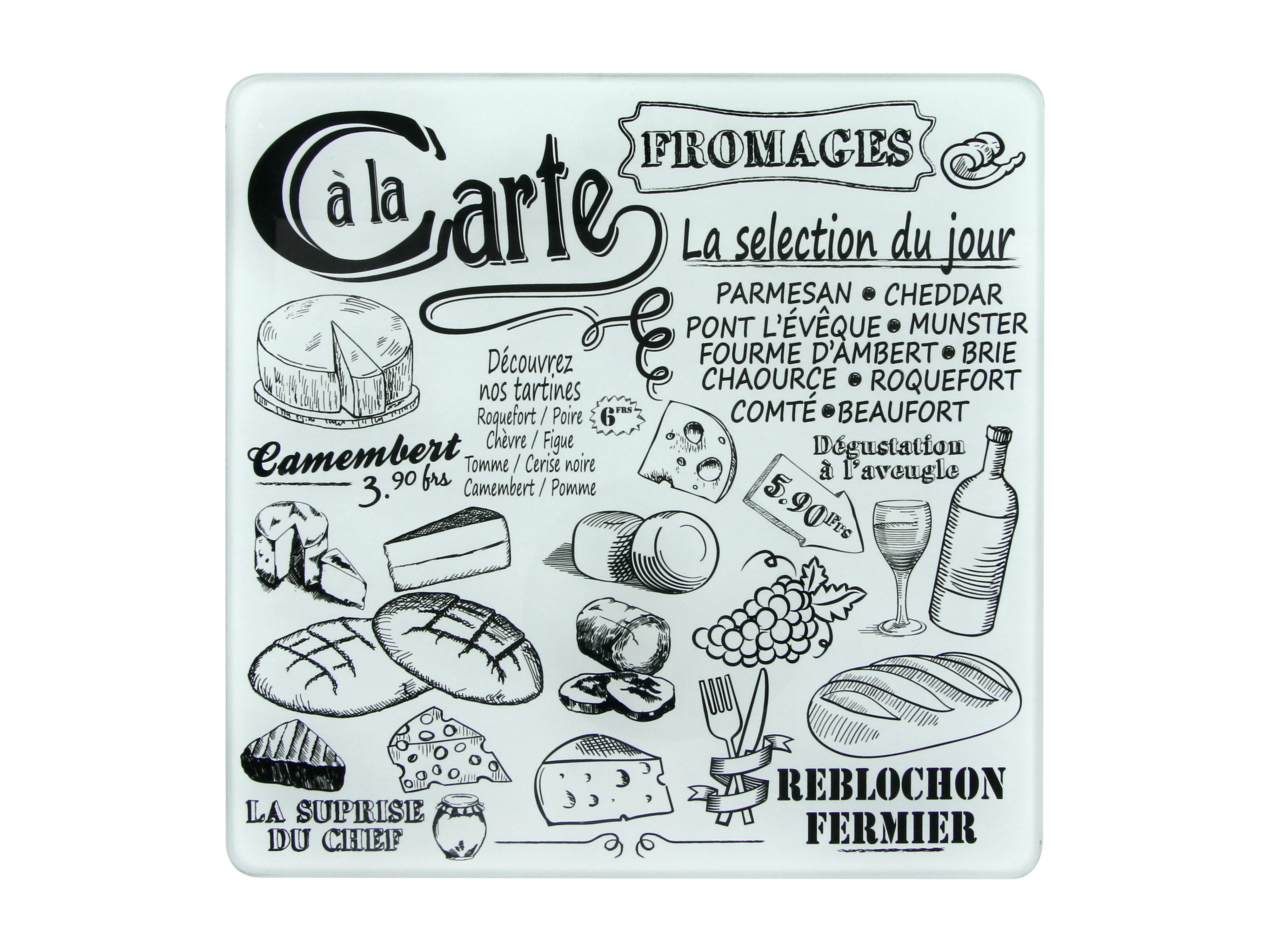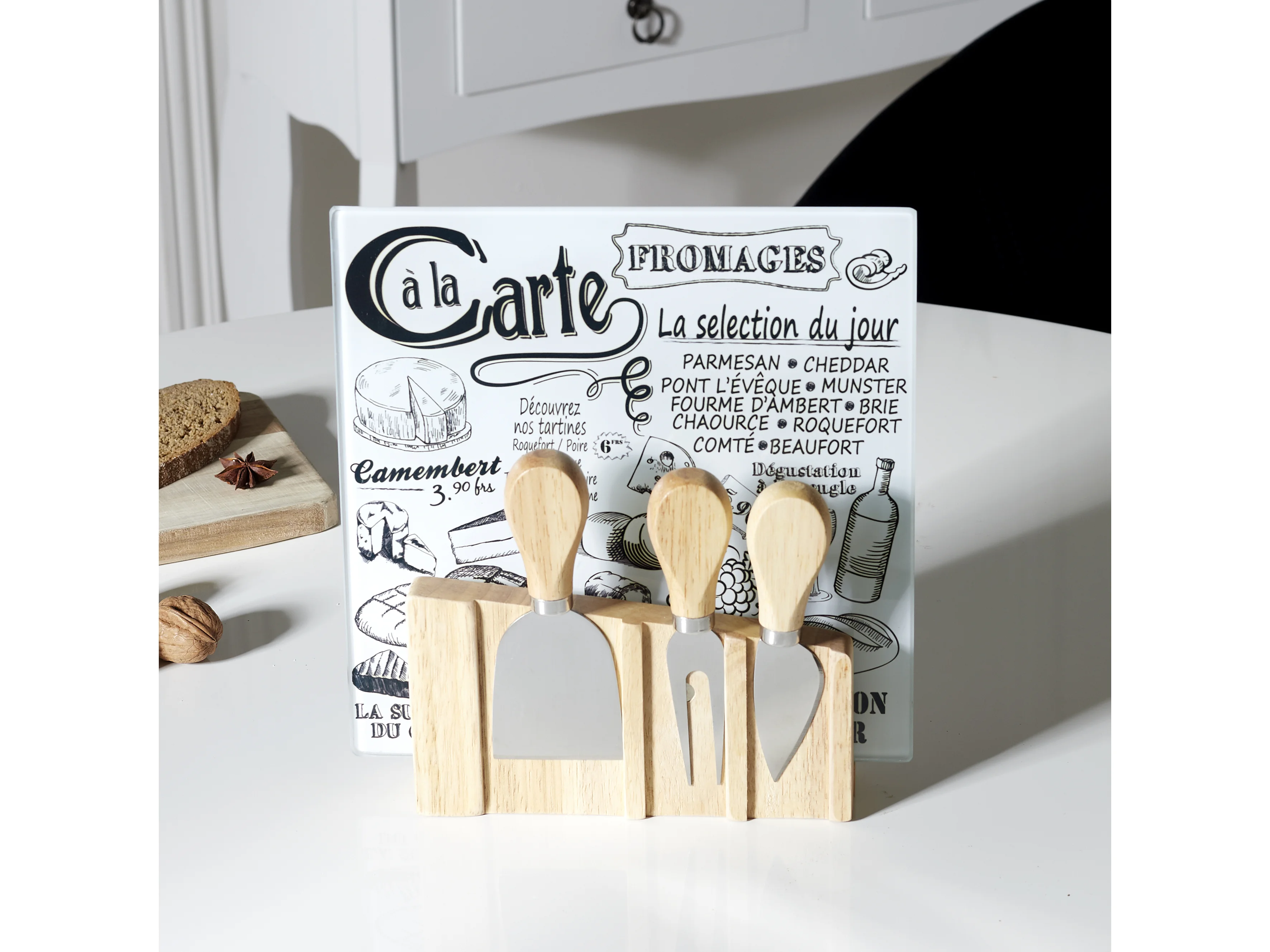 Planche A Fromage Avec 3 Ustensiles Aimantes Blanc, Noir, Marron