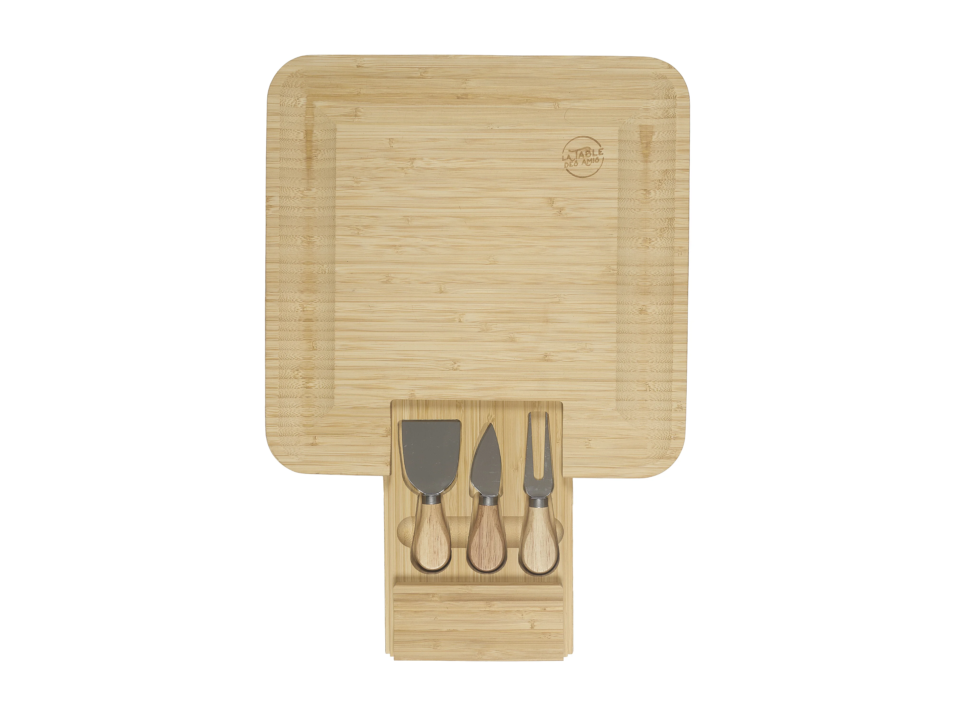 Planche Apero Bambou Tiroir Couteaux Fromage Marron