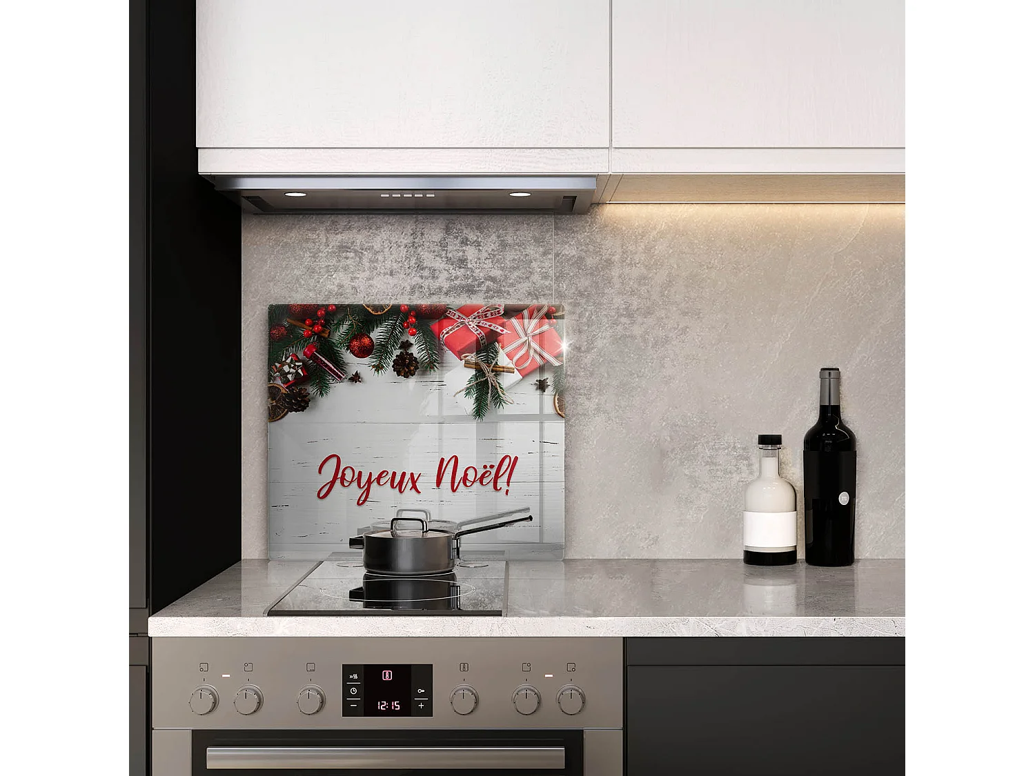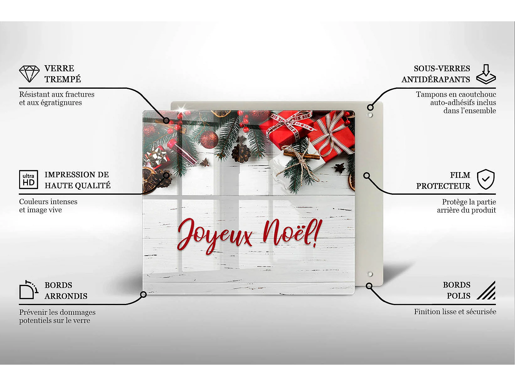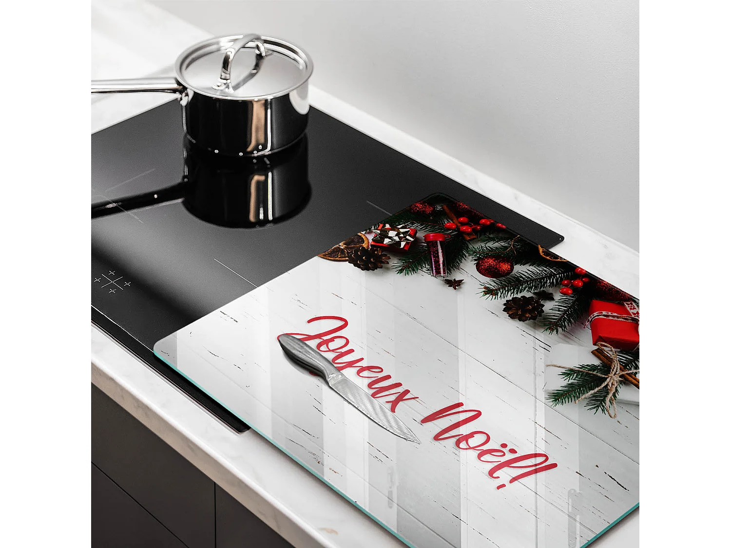 Planche de cuisine rectangulaire en verre avec une phrase "Joyeuses fêtes!" 60x52 cm