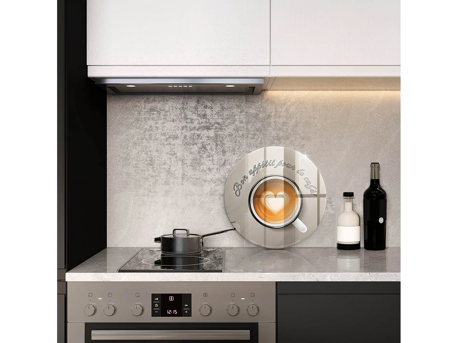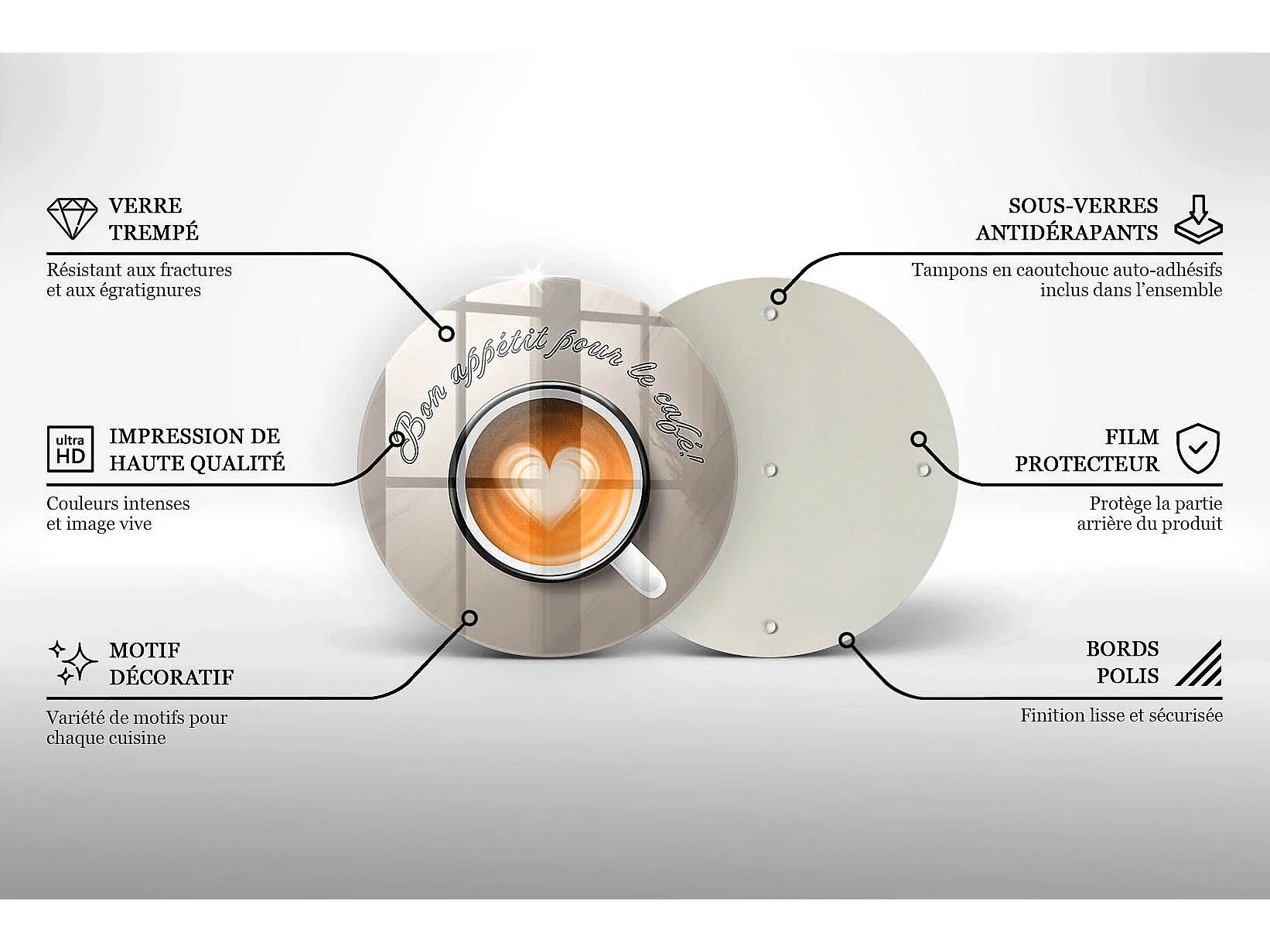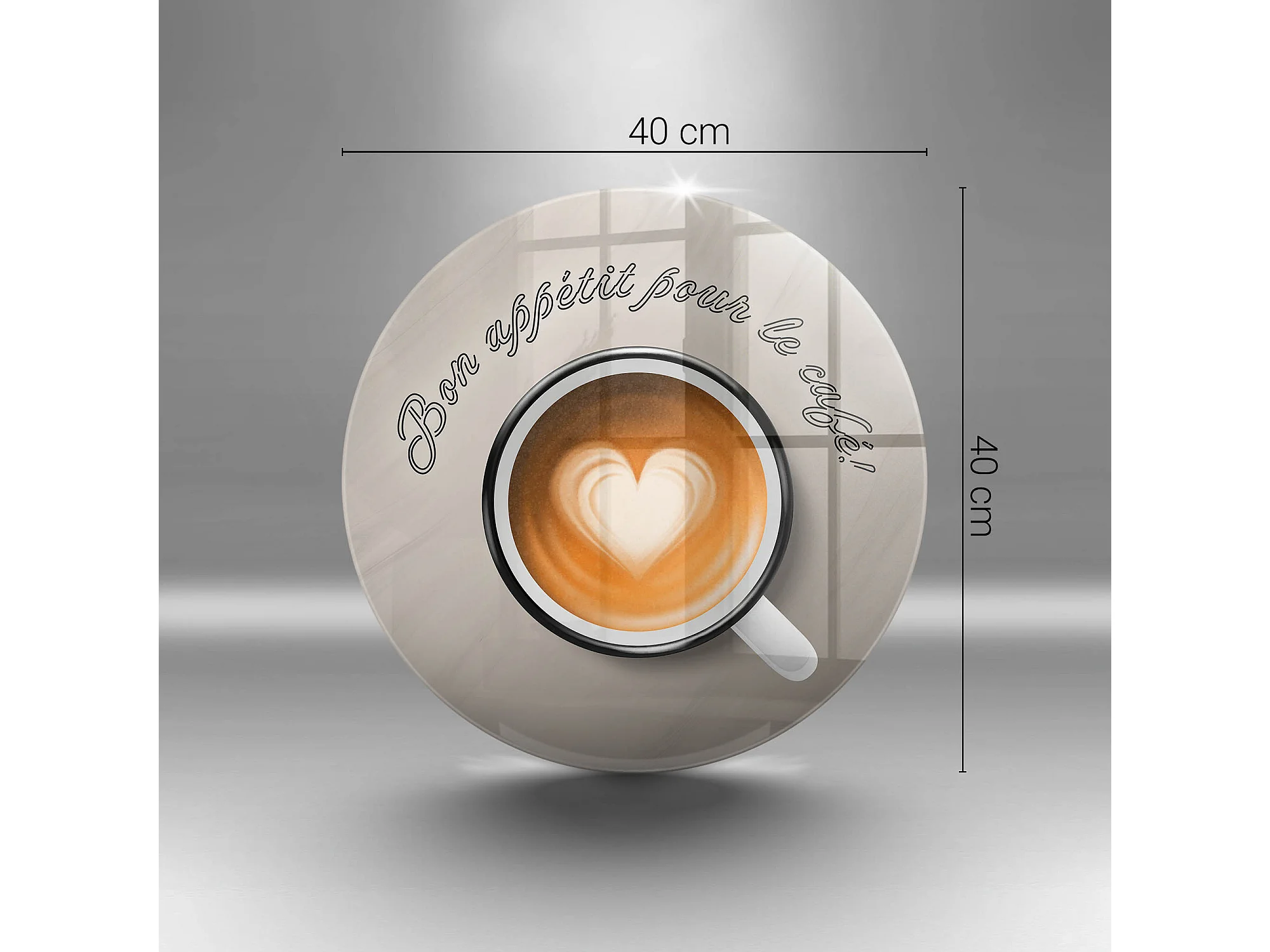 Planche de cuisine ronde en verre avec une phrase "Bon café!" 40 cm
