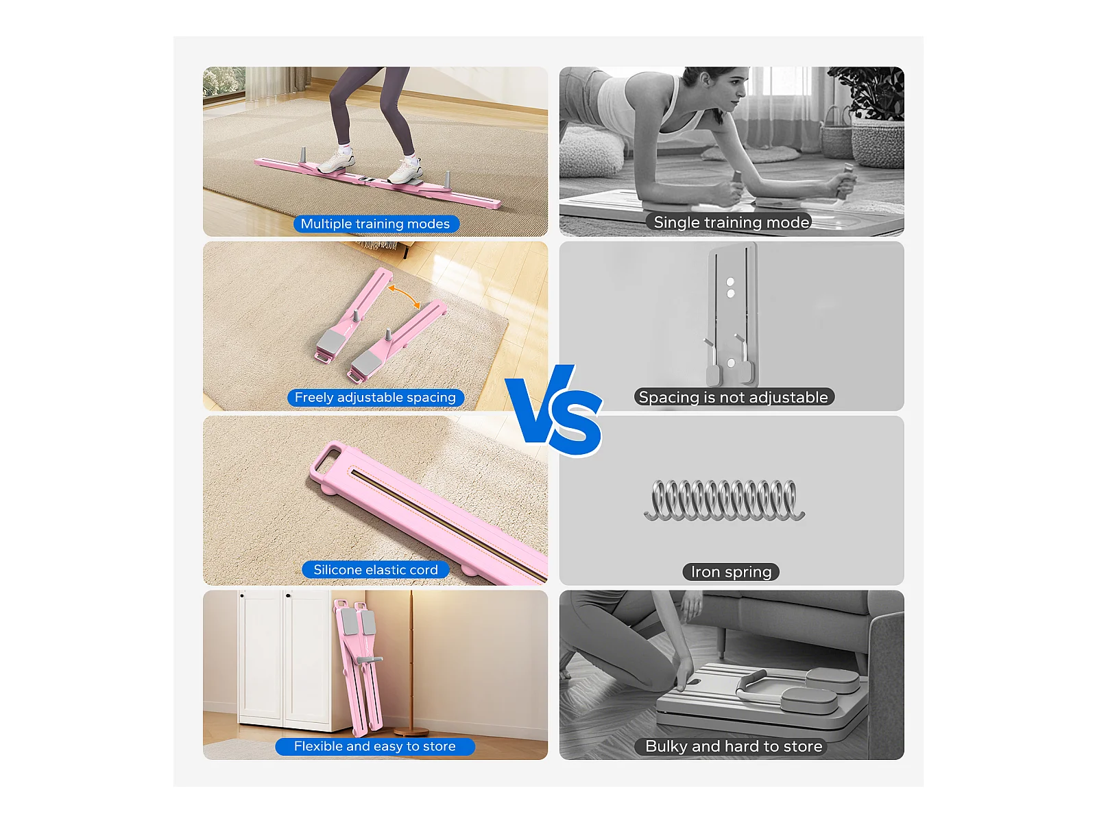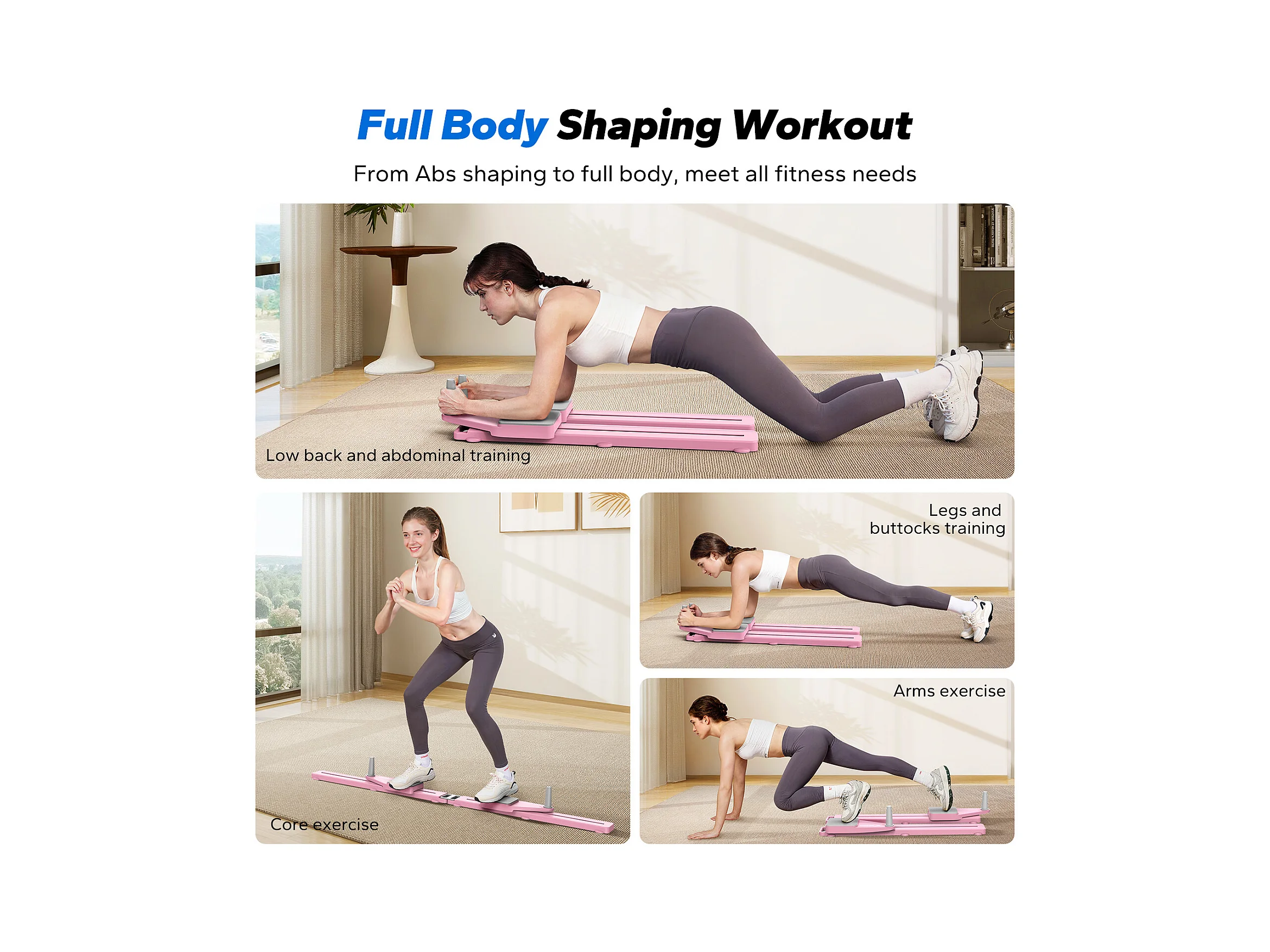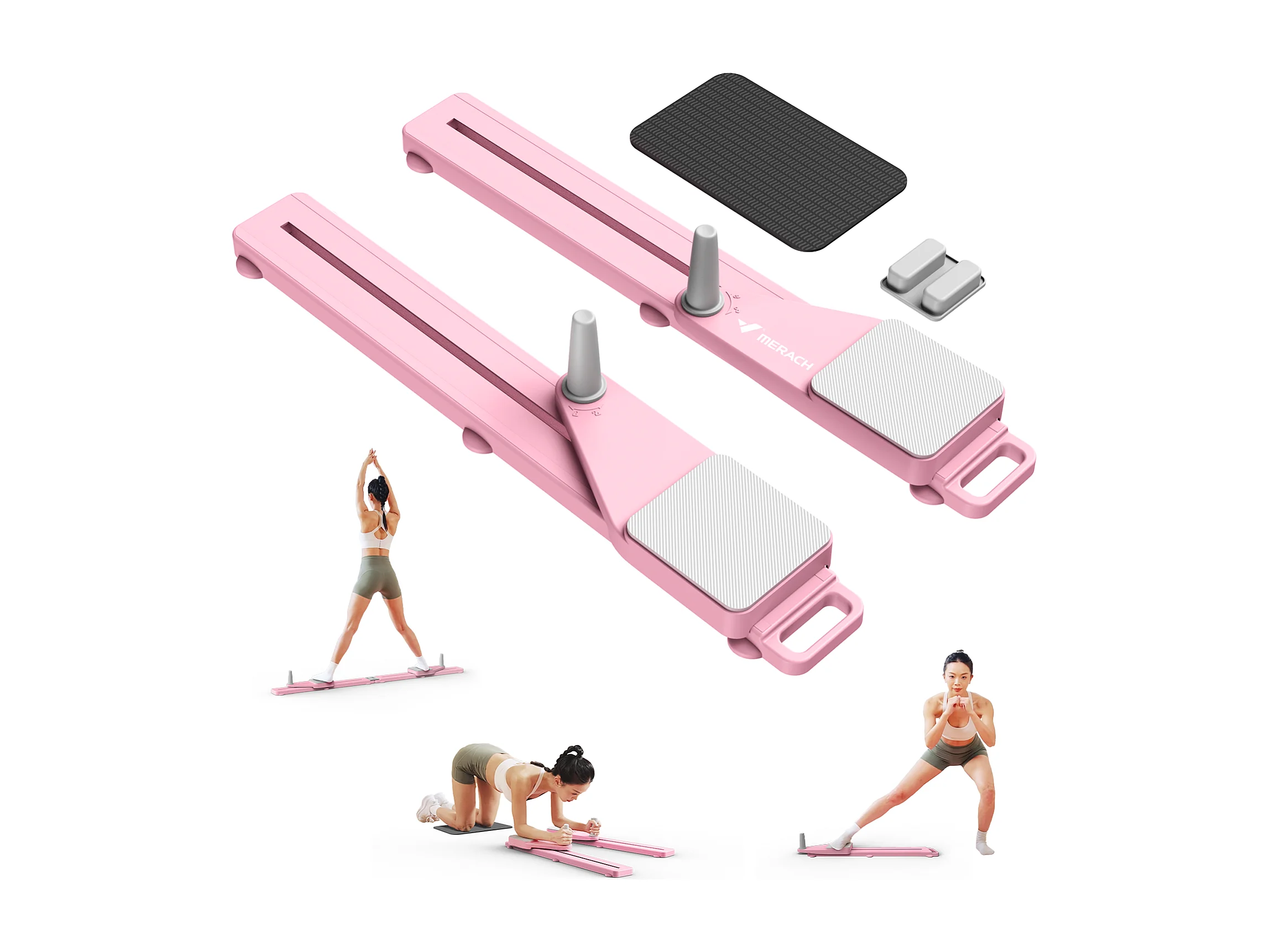 Planche de Pilates multifonction pliable MERACH, Bandes de résistance, entraînement Pilates et renforcement du tronc, rose
