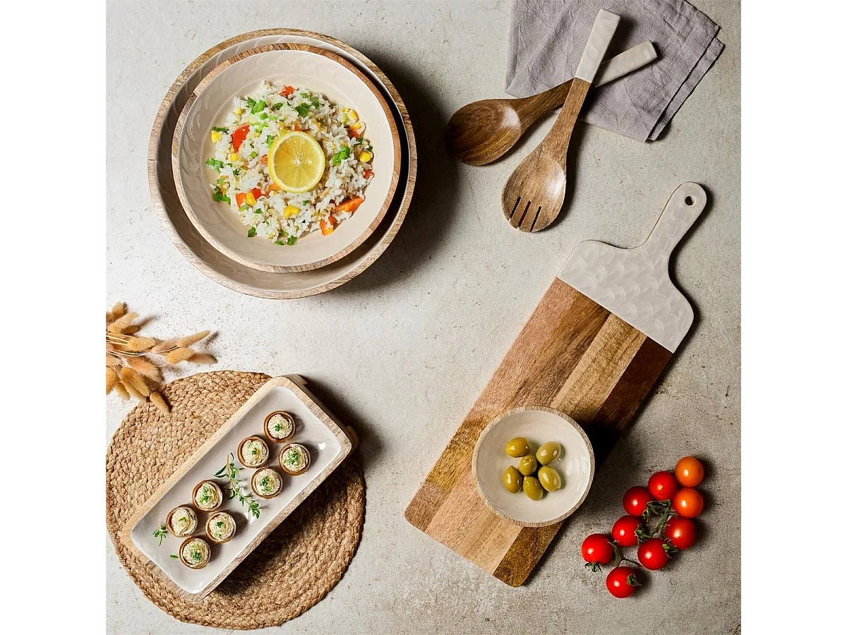 Planche en bois de manguier avec manche texturé nid d'abeille beige (L58cm)