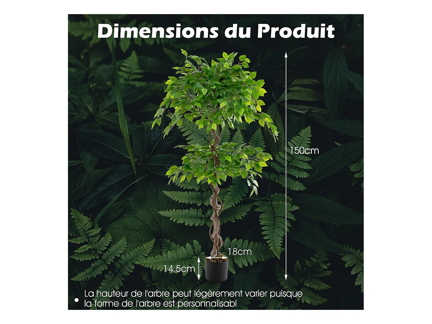 Plante Artificielle de 150CM avec Pot Rempli de Ciment, Ficus Artificiel avec 882 Feuilles Tronc Réaliste Mousse Séchée, Arbre Décoration du Magasin Bureau Maison