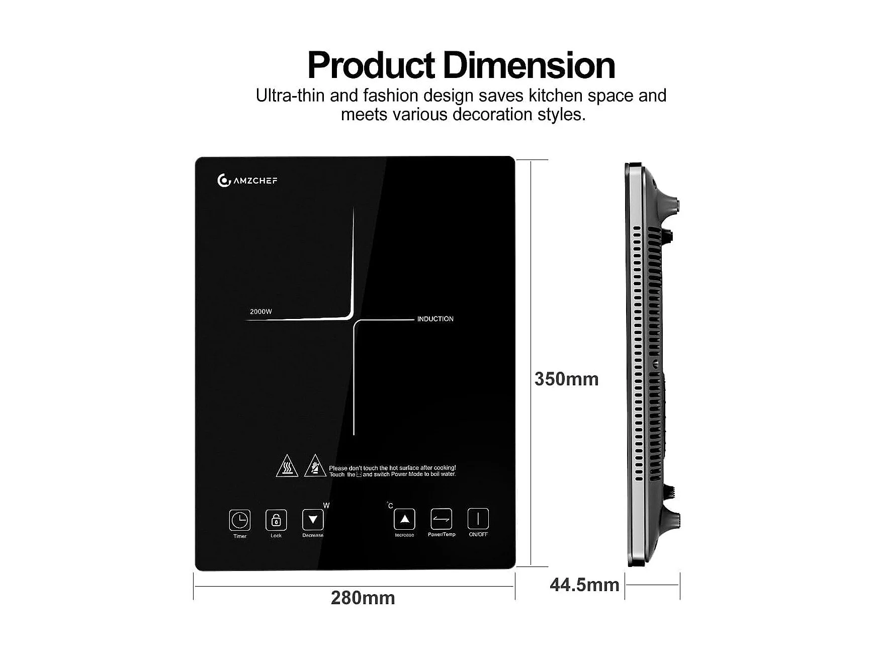 Plaque de cuisson à induction, AMZCHEF ultra-mince,20 niveaux de température 2000W