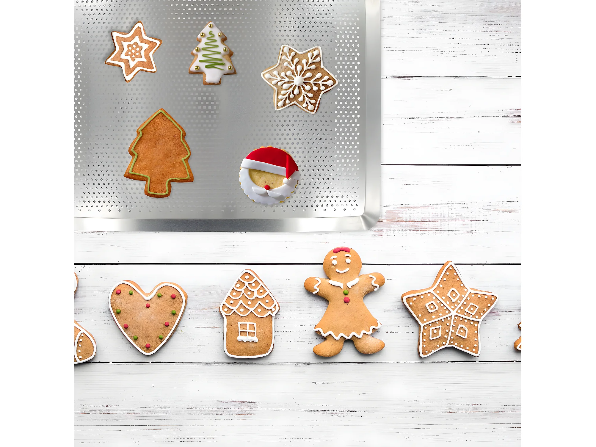 Plaque de cuisson four microperforée de 40 x 30 cm et 7 emporte-pièces de Noël inox Zenker Noël