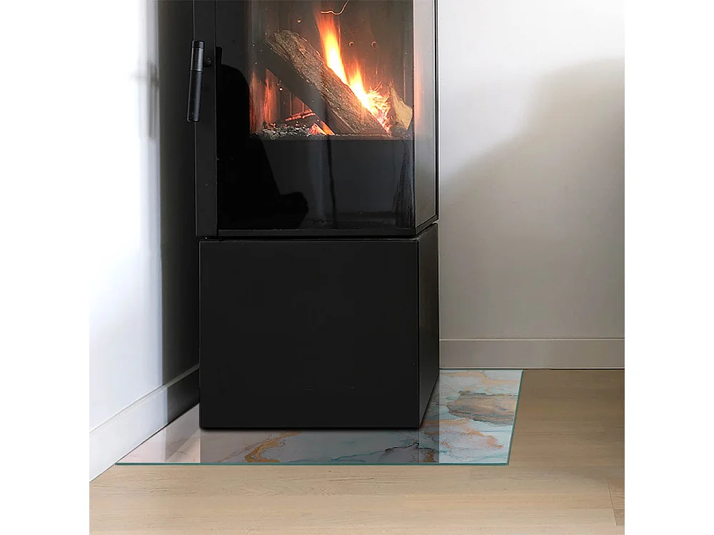 Plaque de sol en verre pour poêle - Carré - 50x50 - Modèle fluide abstrait