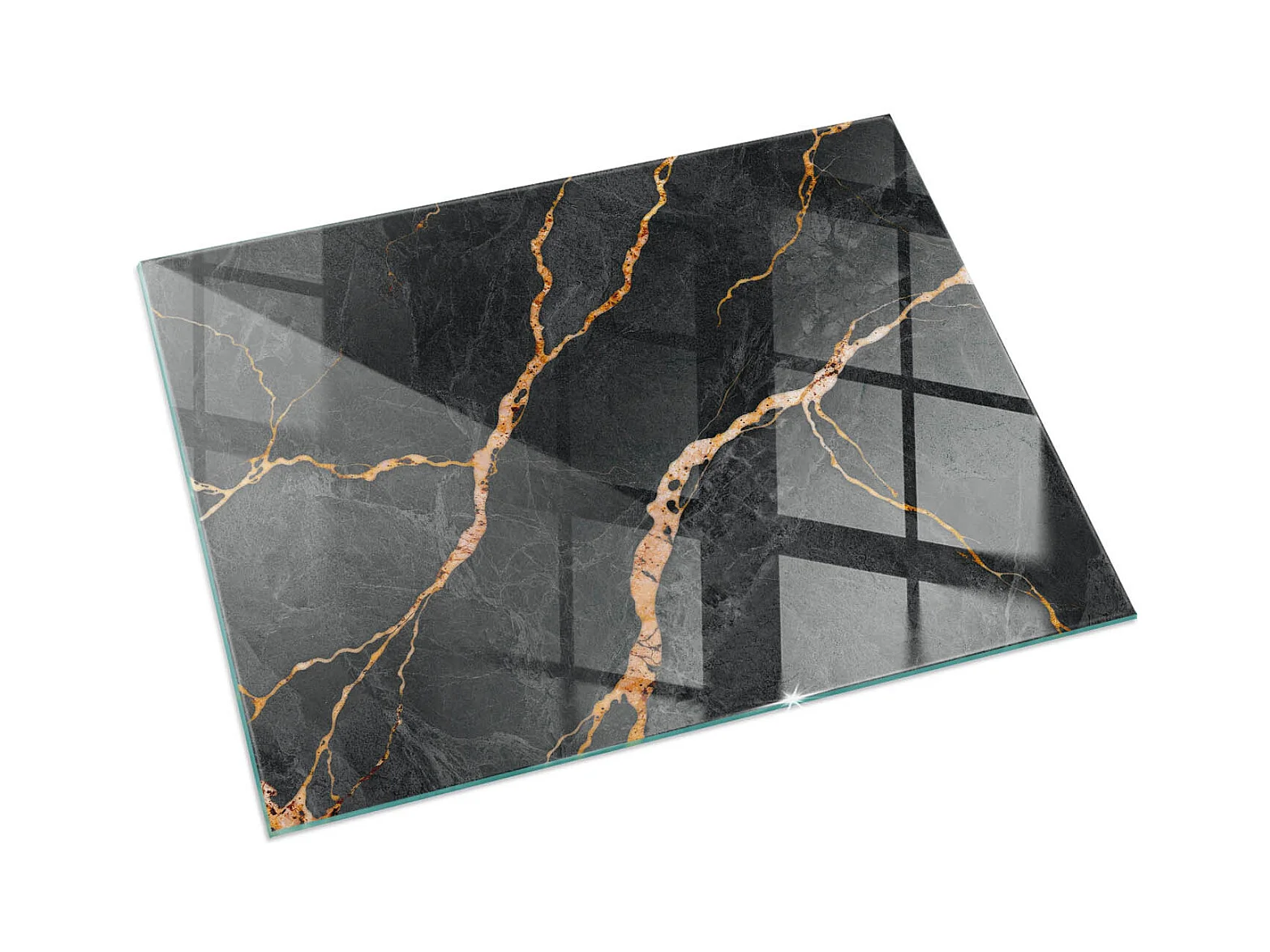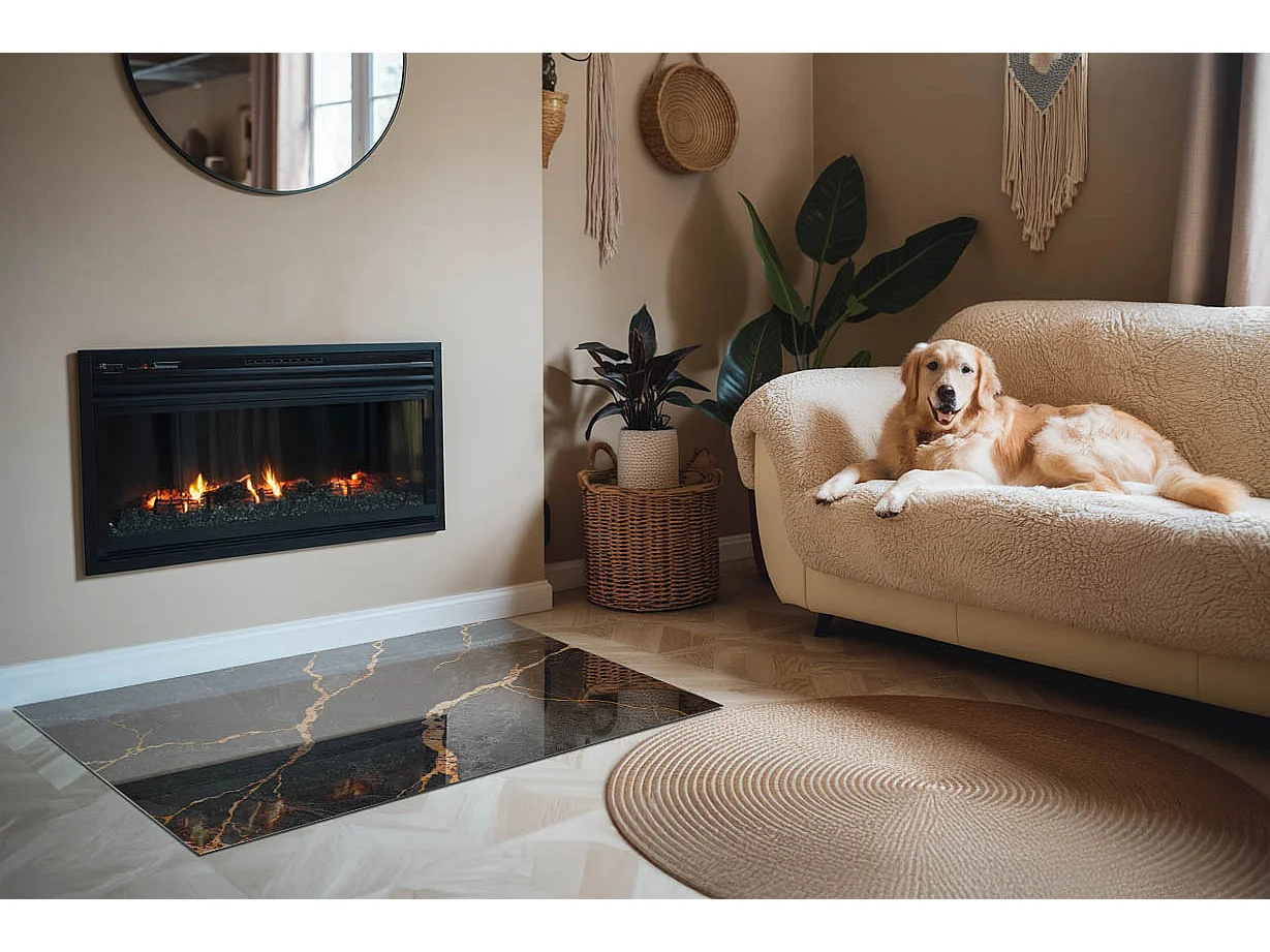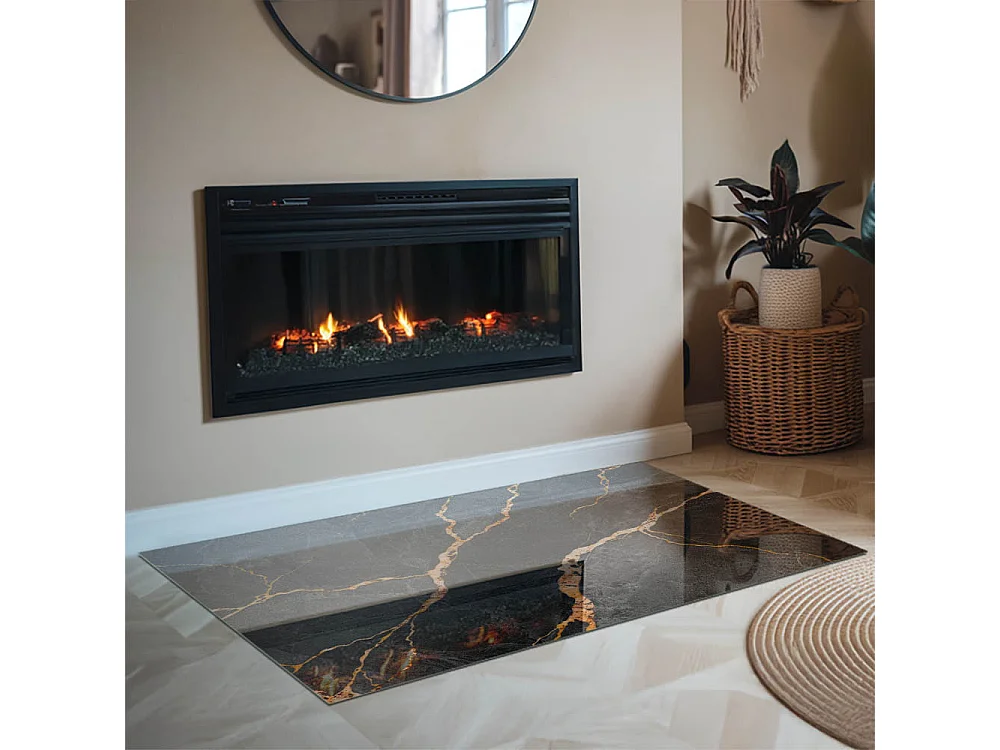 Plaque de sol en verre pour poêle - Rectangle - 120x80 - Marbre élégant avec des veines