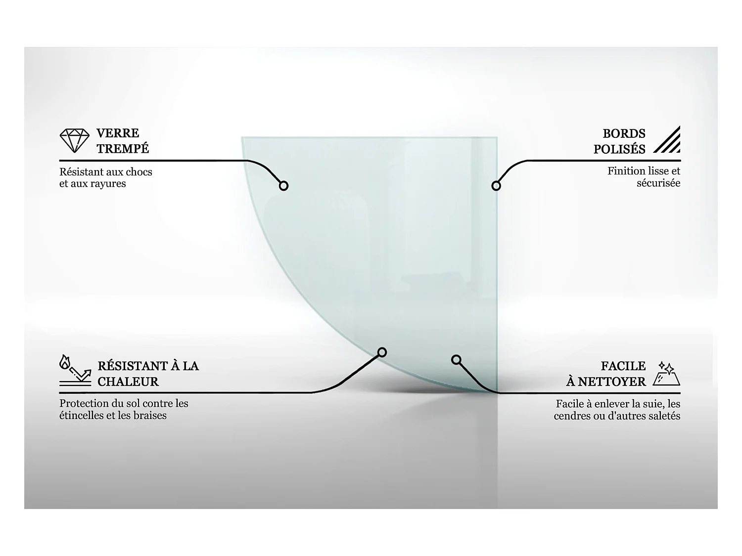 Plaque de sol en verre pour poêle - transparent - Un quart - 1/4 100x100 -