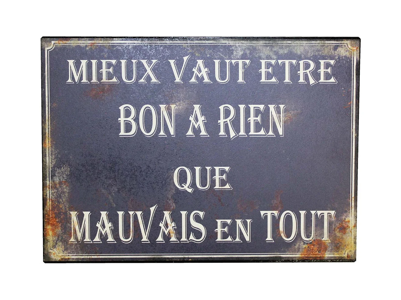 Plaque en métal humour 21 x 15 cm Mieux vaut être bon à rien...