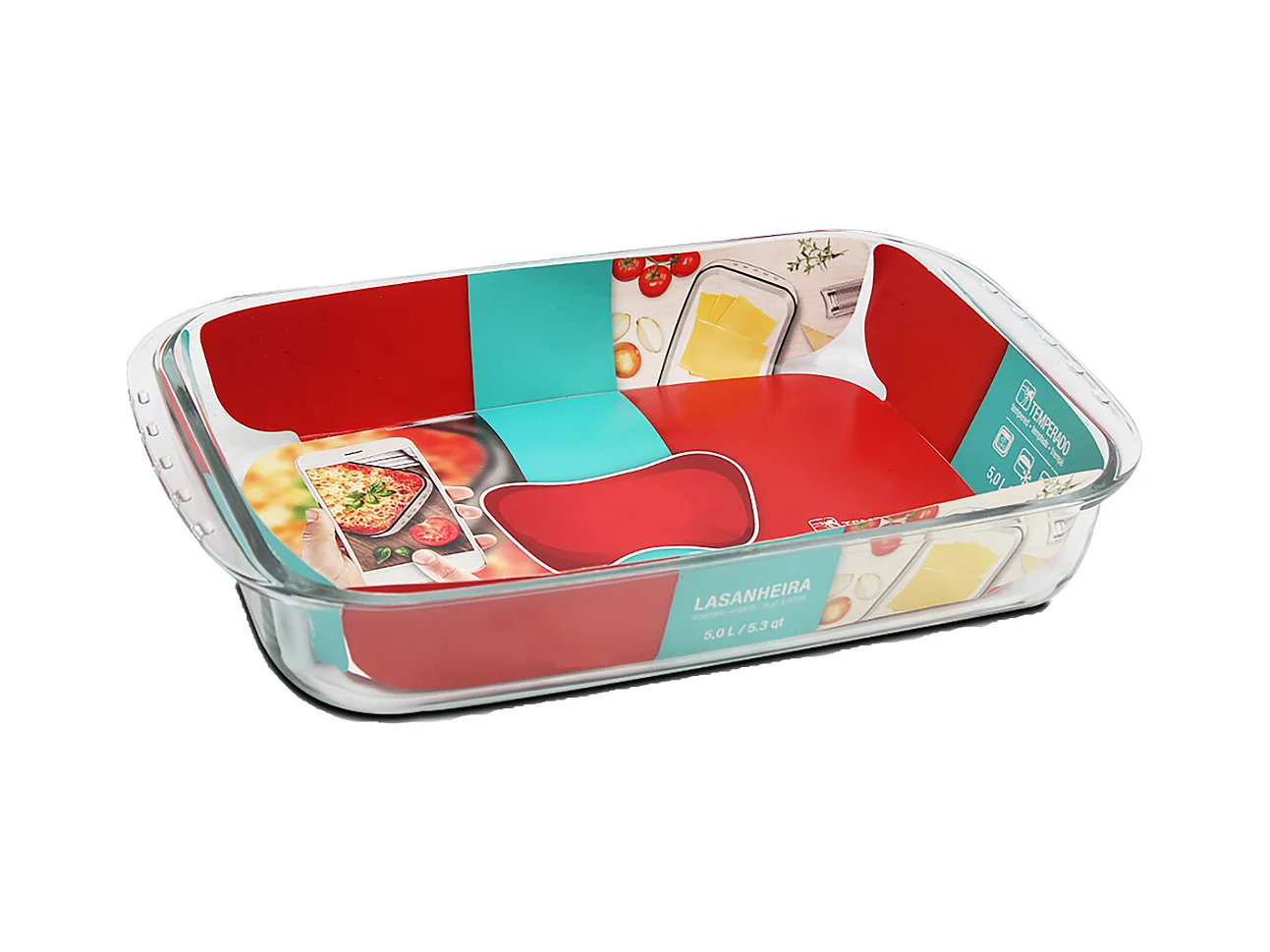 Plateau à four rectangulaire, Plat à gratin, moule de cuisson en verre, capacité 5 L - Longueur 40.4 x Profondeur 24.9 x Hauteur 7.2 cm