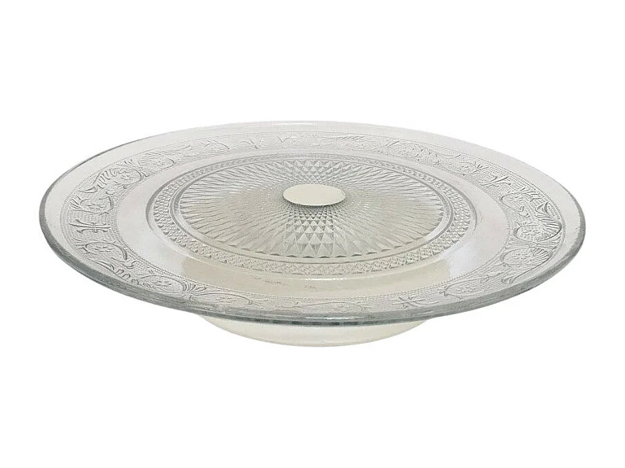Plateau à gâteau métal et verre blanc Ø.32.5 x 35 cm