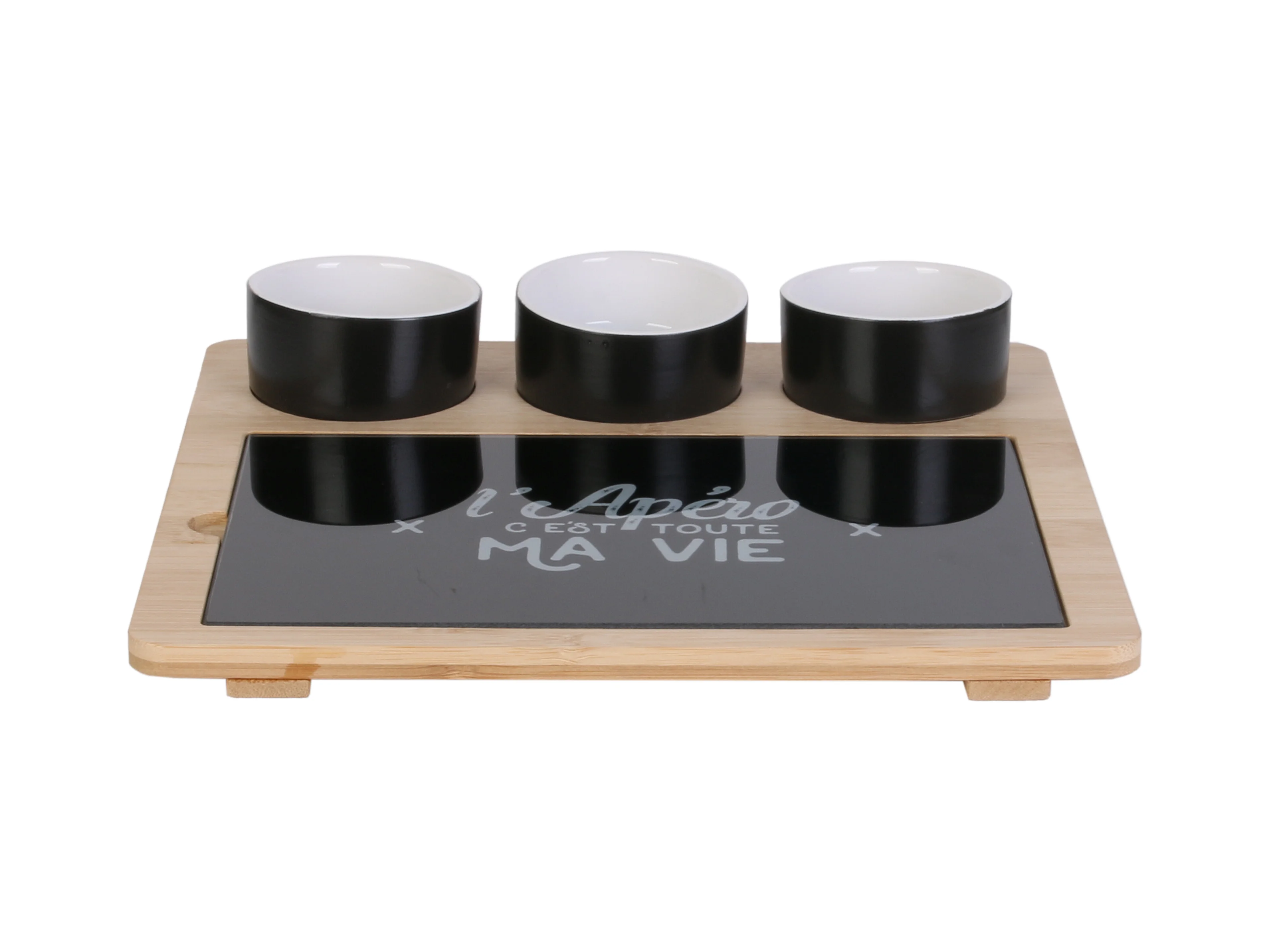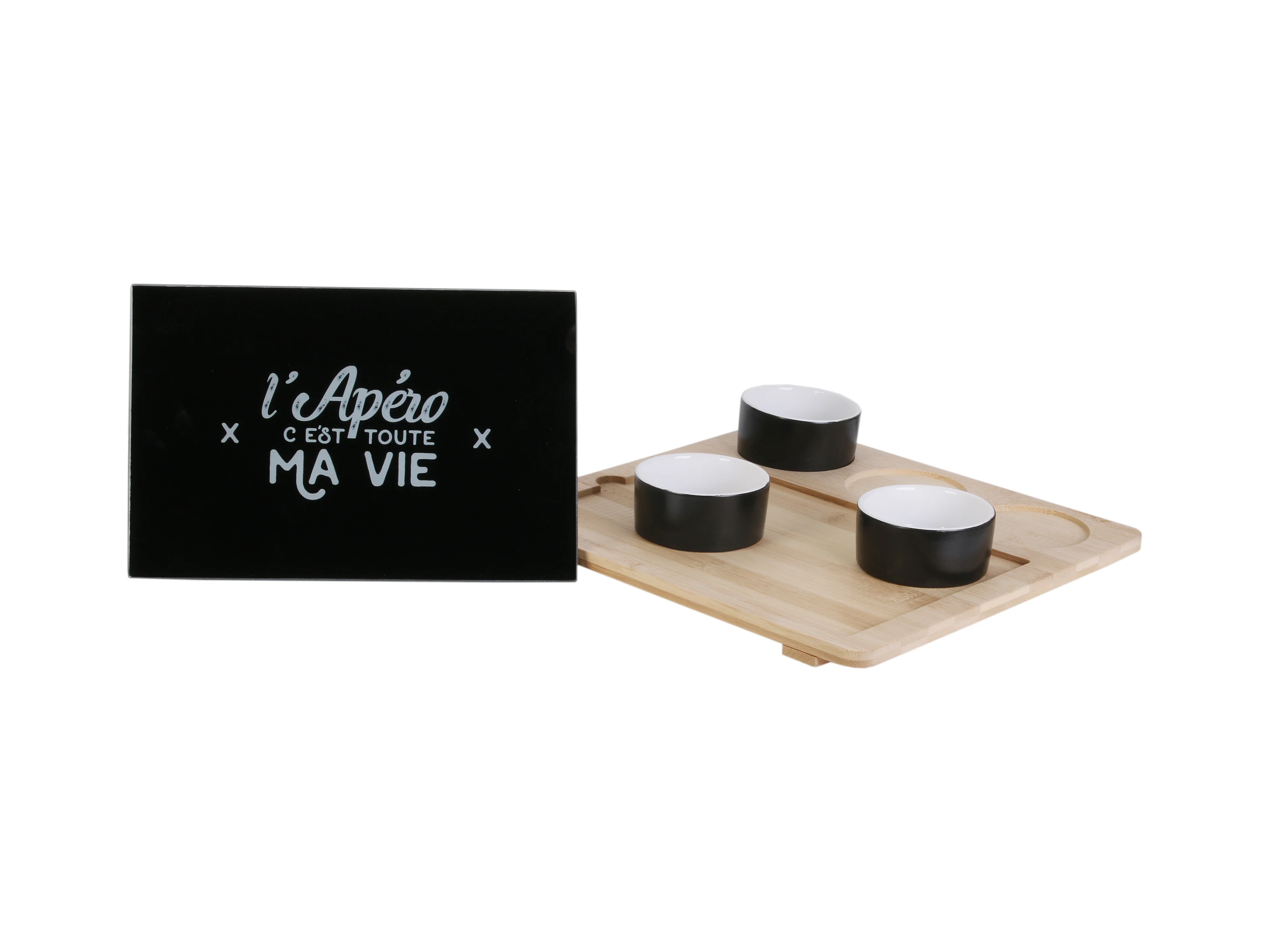 Plateau Bambou Avec Planche Et Coupelle X3 Marron, Noir, Blanc