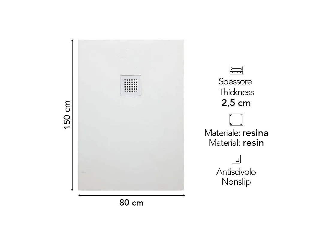 Plateau De Douche 150X80cm Résine Blanc Avec Couvercle De Bonde | Muse