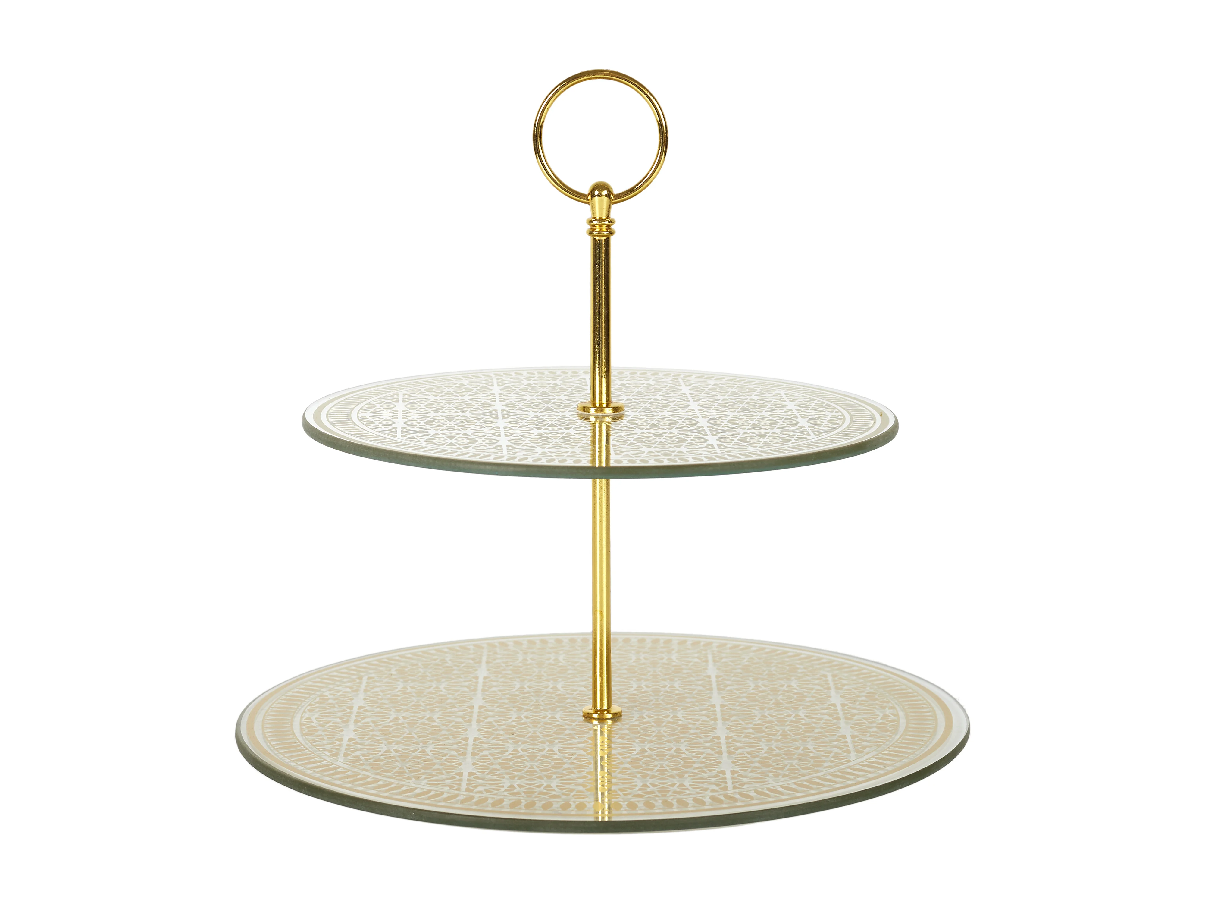 Plateau En Verre 2 Etages D25cm Or, Gris