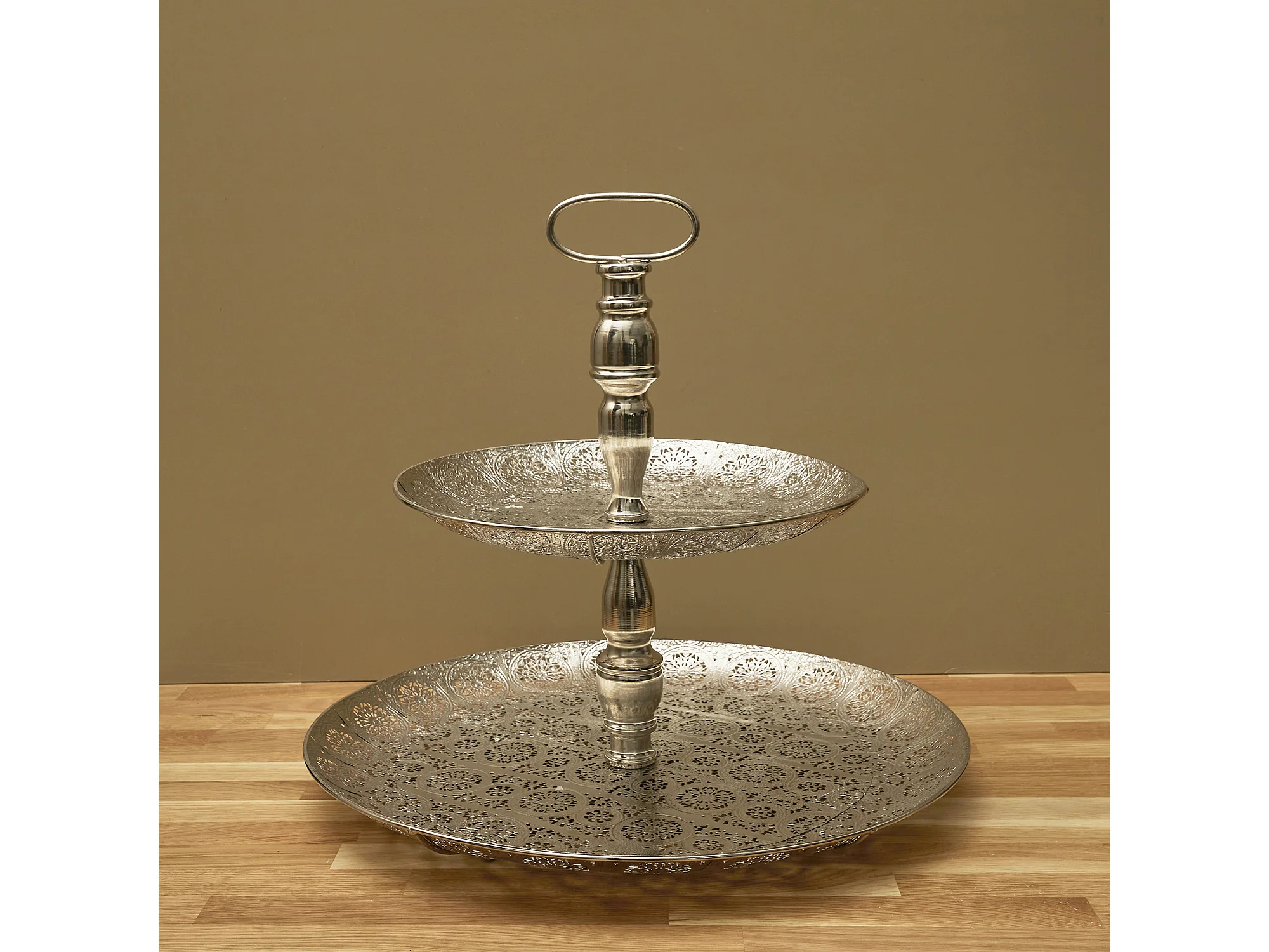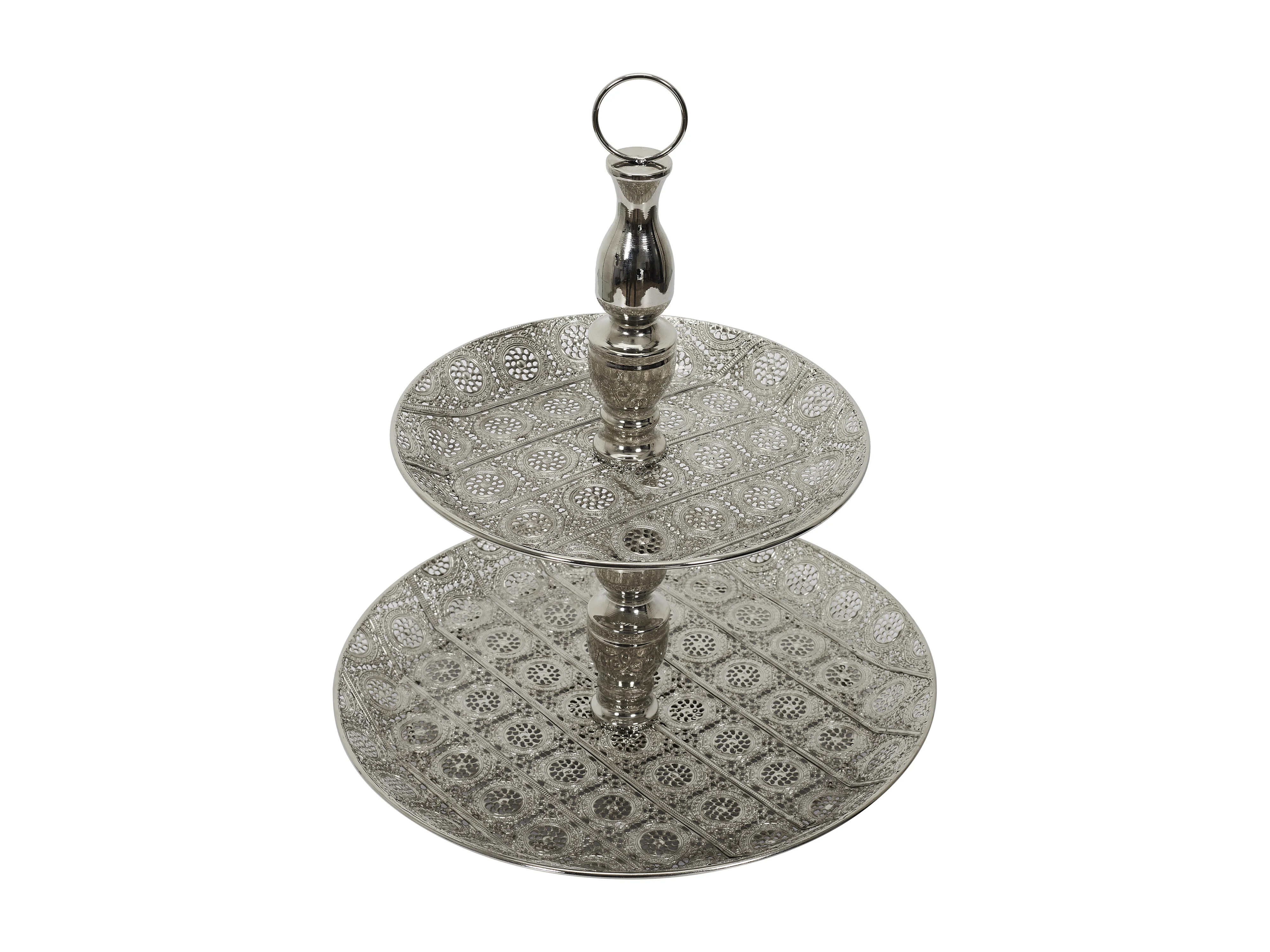 Plateau Decoratif Metal Double 49cm Argent