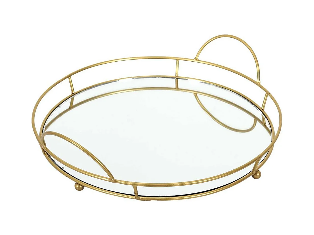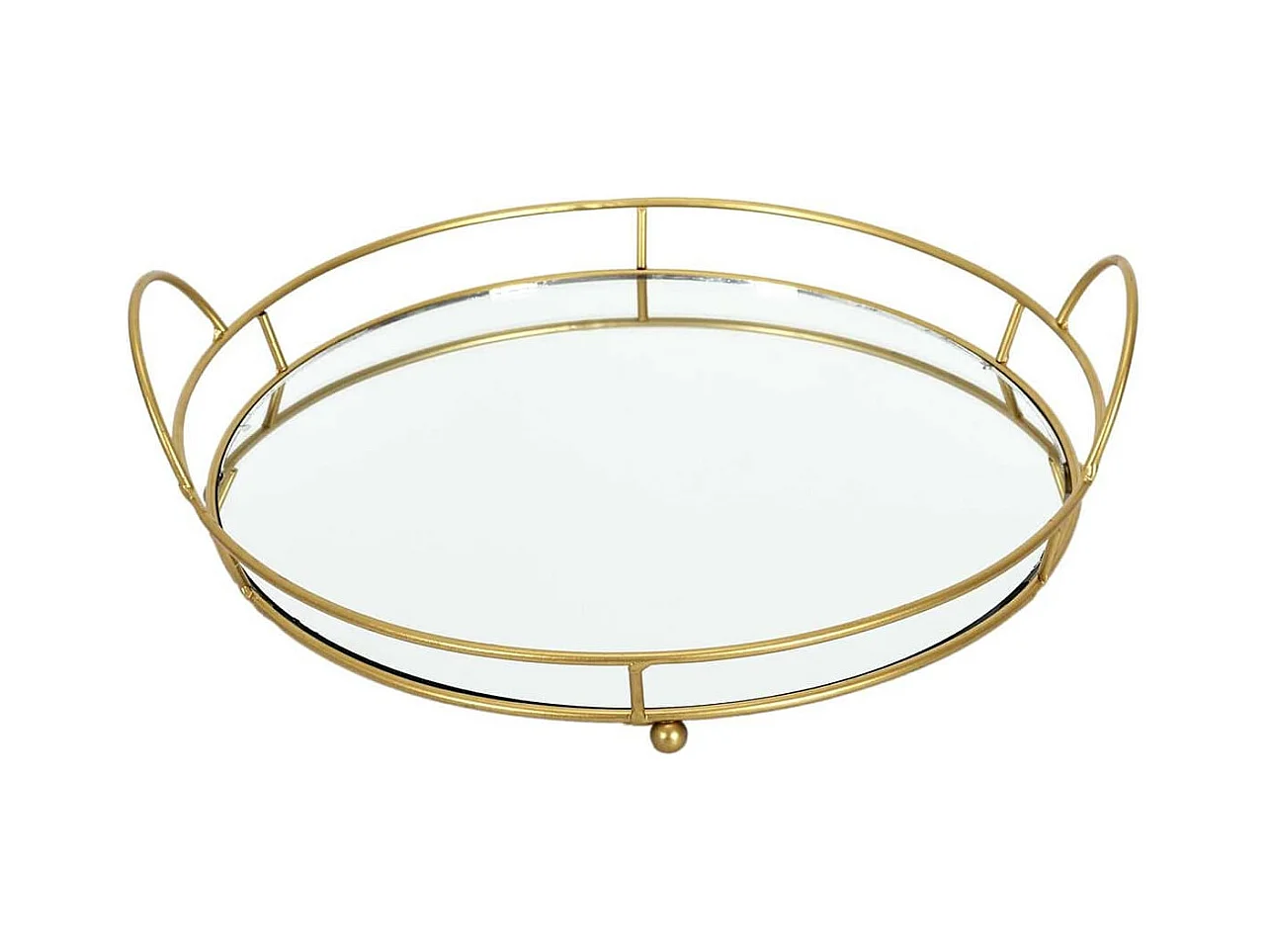 Plateau de Présentation Miroir et Métal Doré Ø34cm - VICTOR