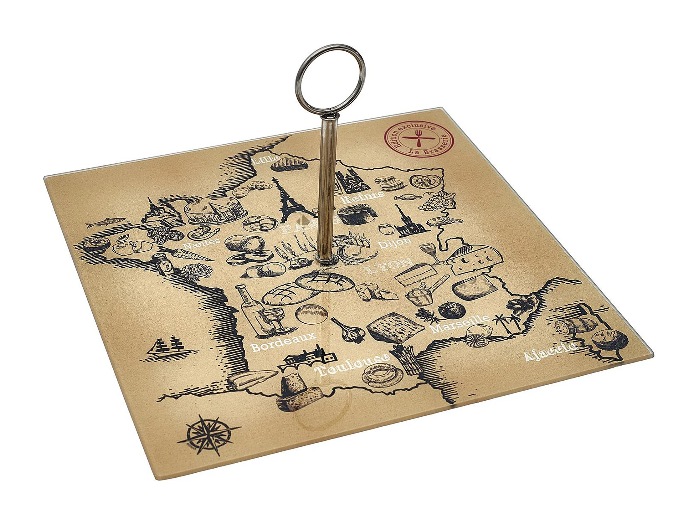Plateau en verre FRANCE ET FROMAGES forme carte de la France beige et noir