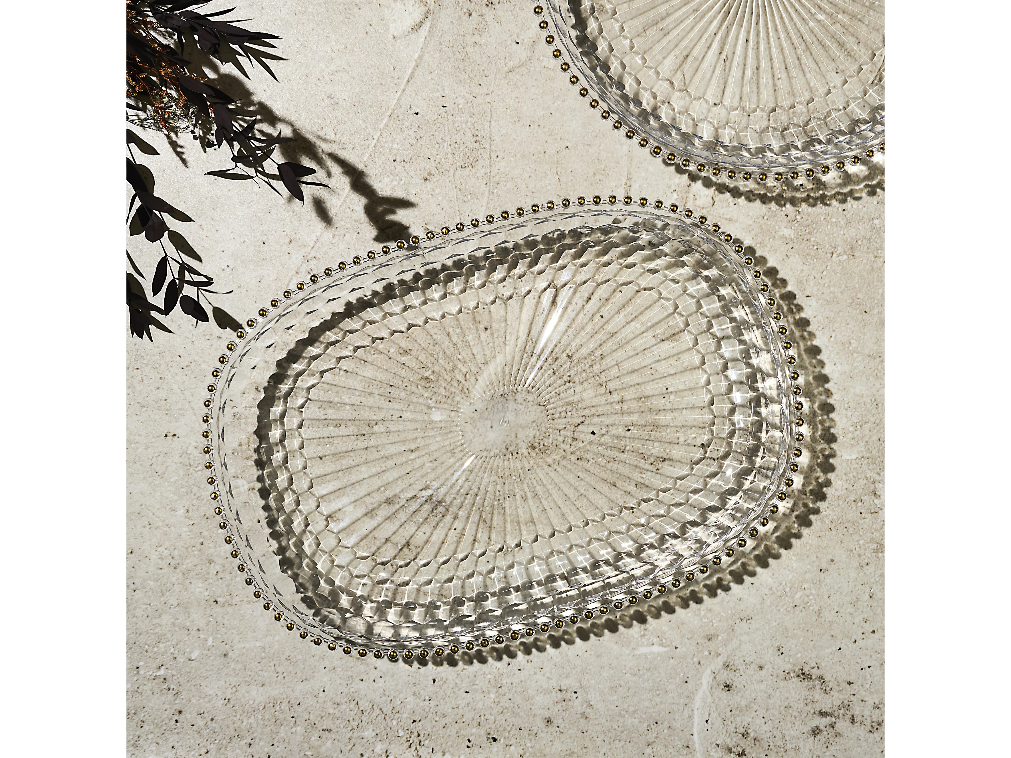 Plateau Rond Plastique D38.5cm Sabah Transparent, Or