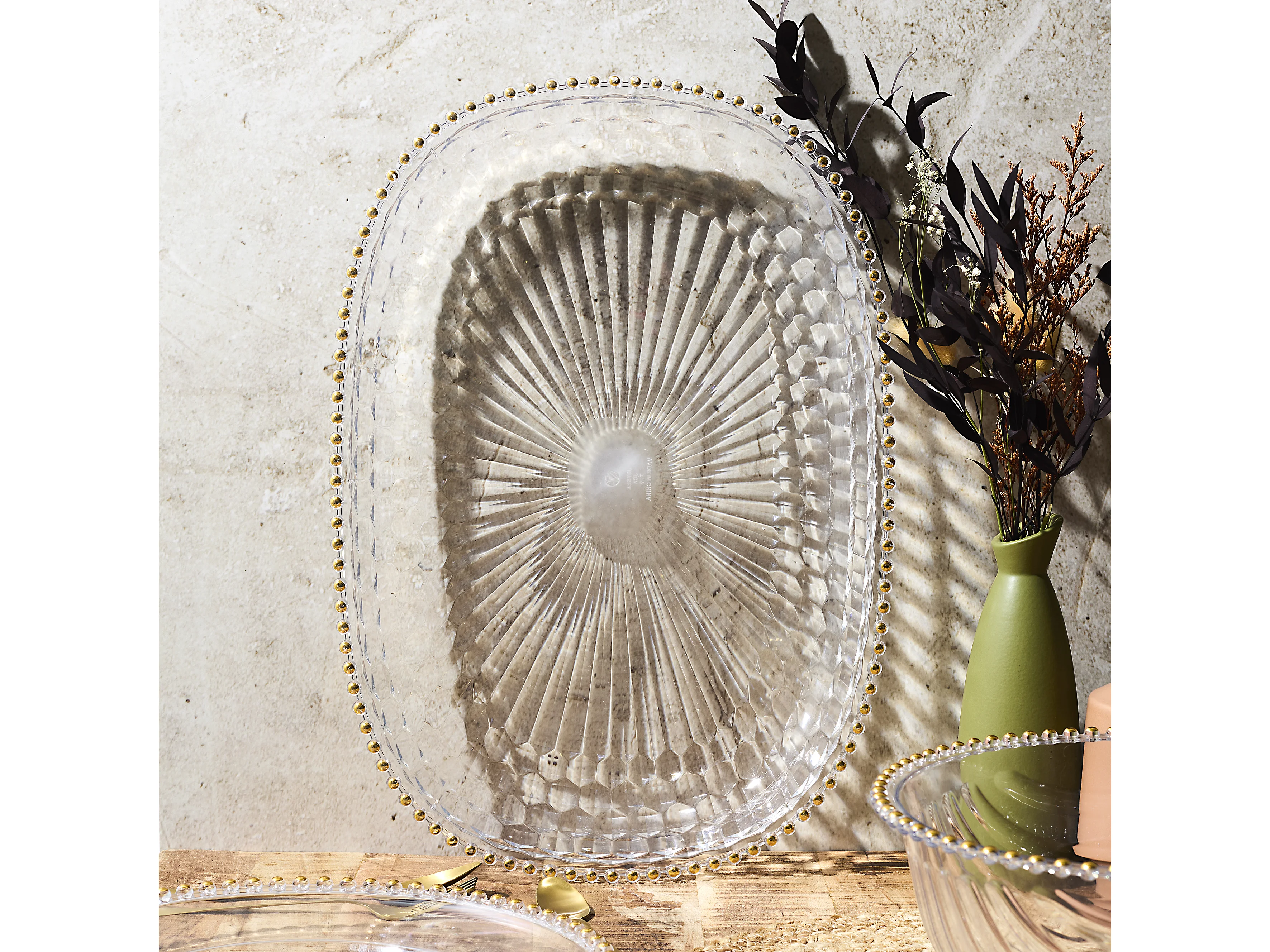 Plateau Plastique 48cm Sabah Transparent, Or
