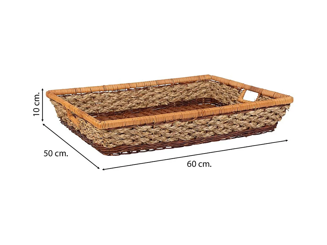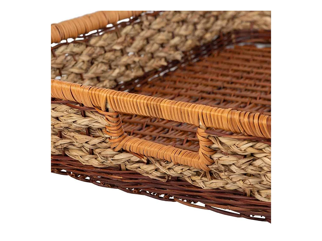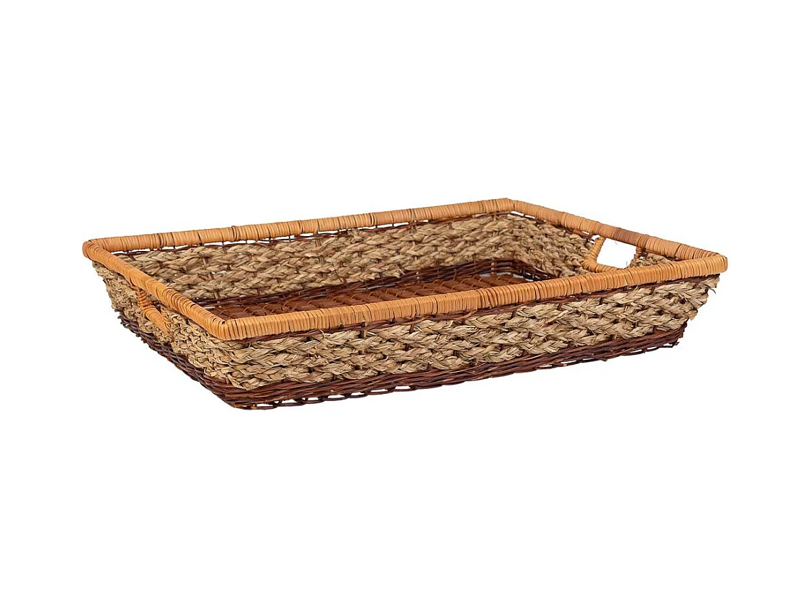 Plateau rectangulaire en corde tressée marron 60x50x10h