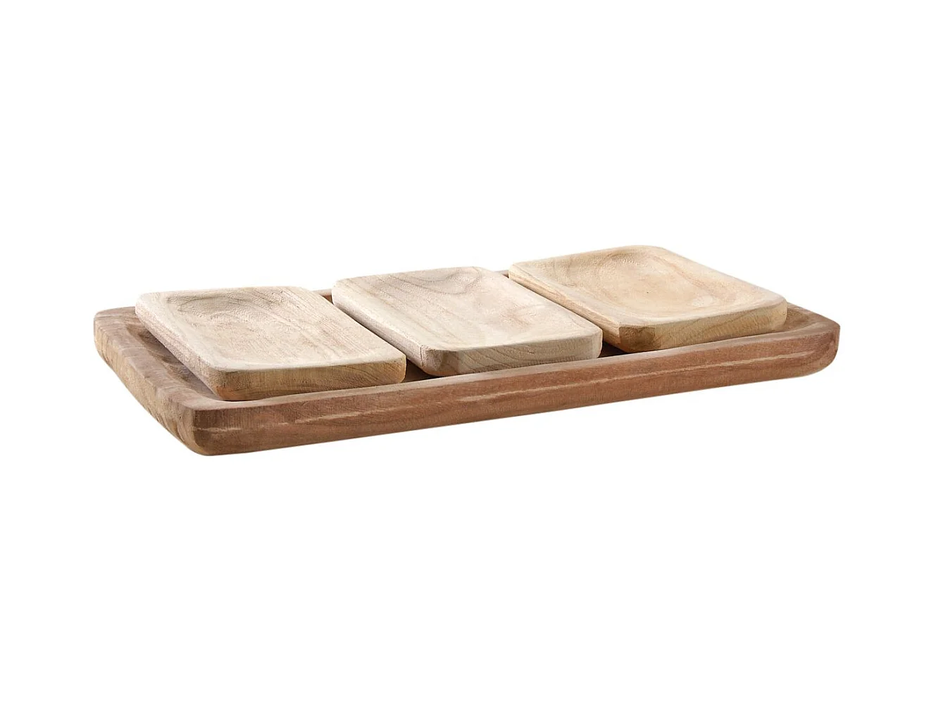 Ensemble de 4 plateaux assortis en paulownia