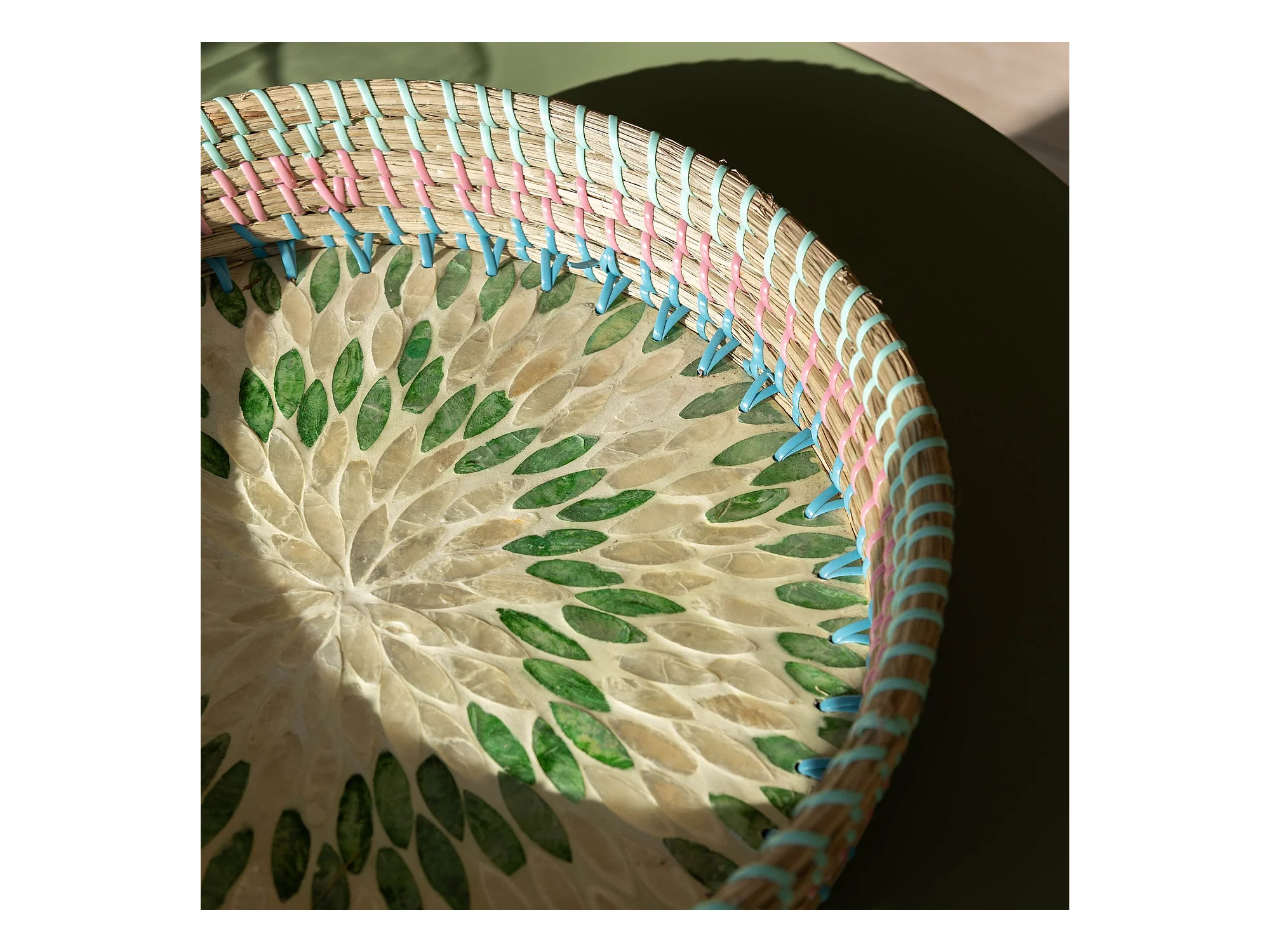 Now's Home - Plateau Rond En Jonc De Mer Et En Nacre D33xh6cm Paros