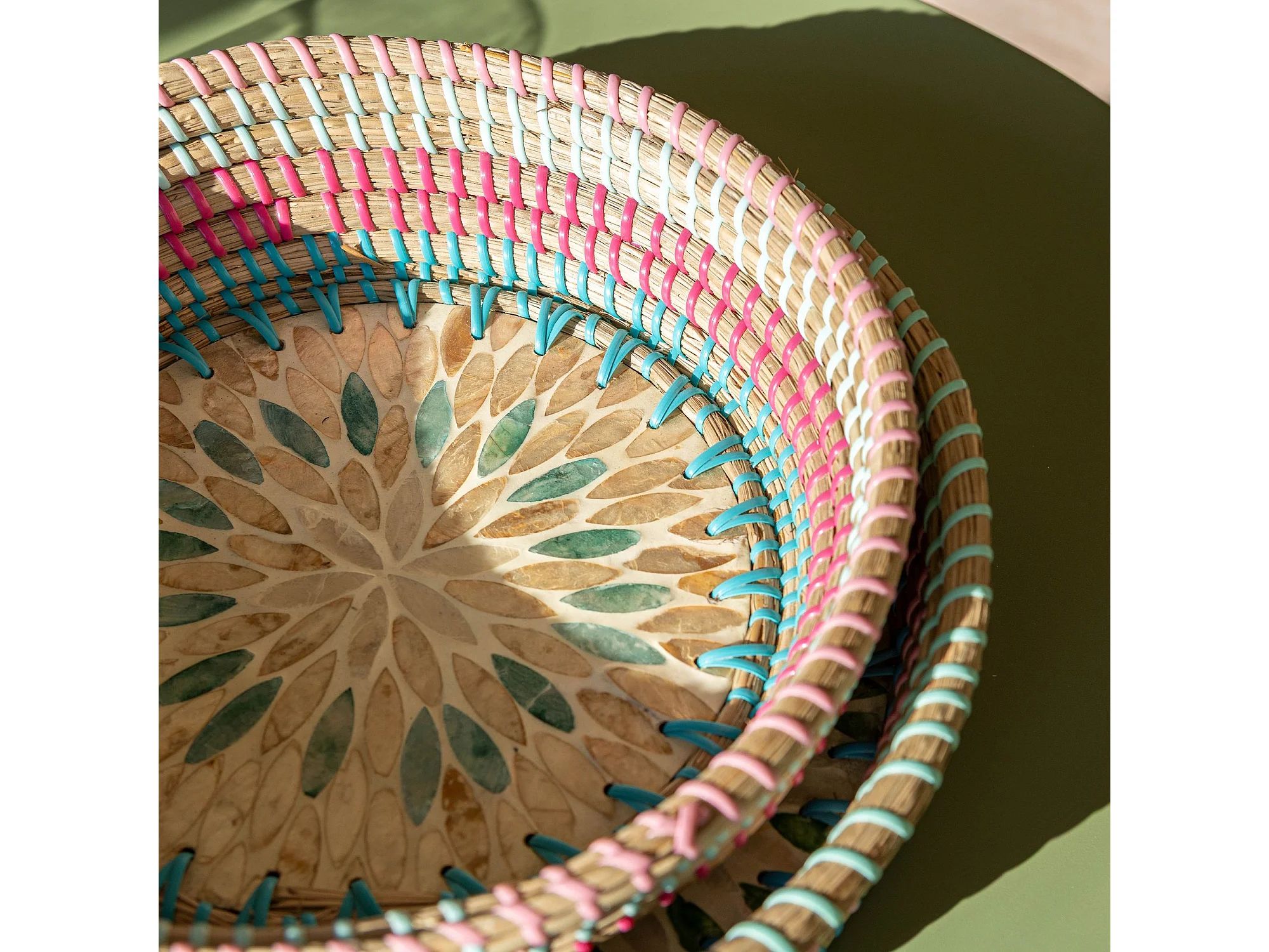 Now's Home - Plateau Rond En Jonc De Mer Et Nacre D30xh7cm Paros