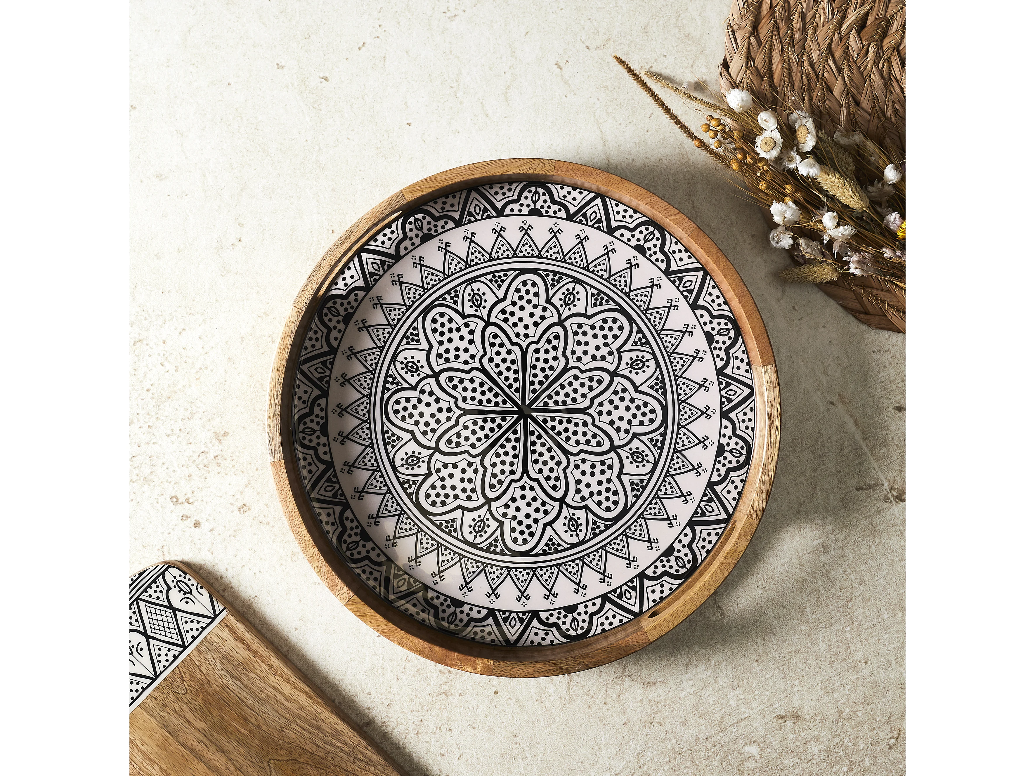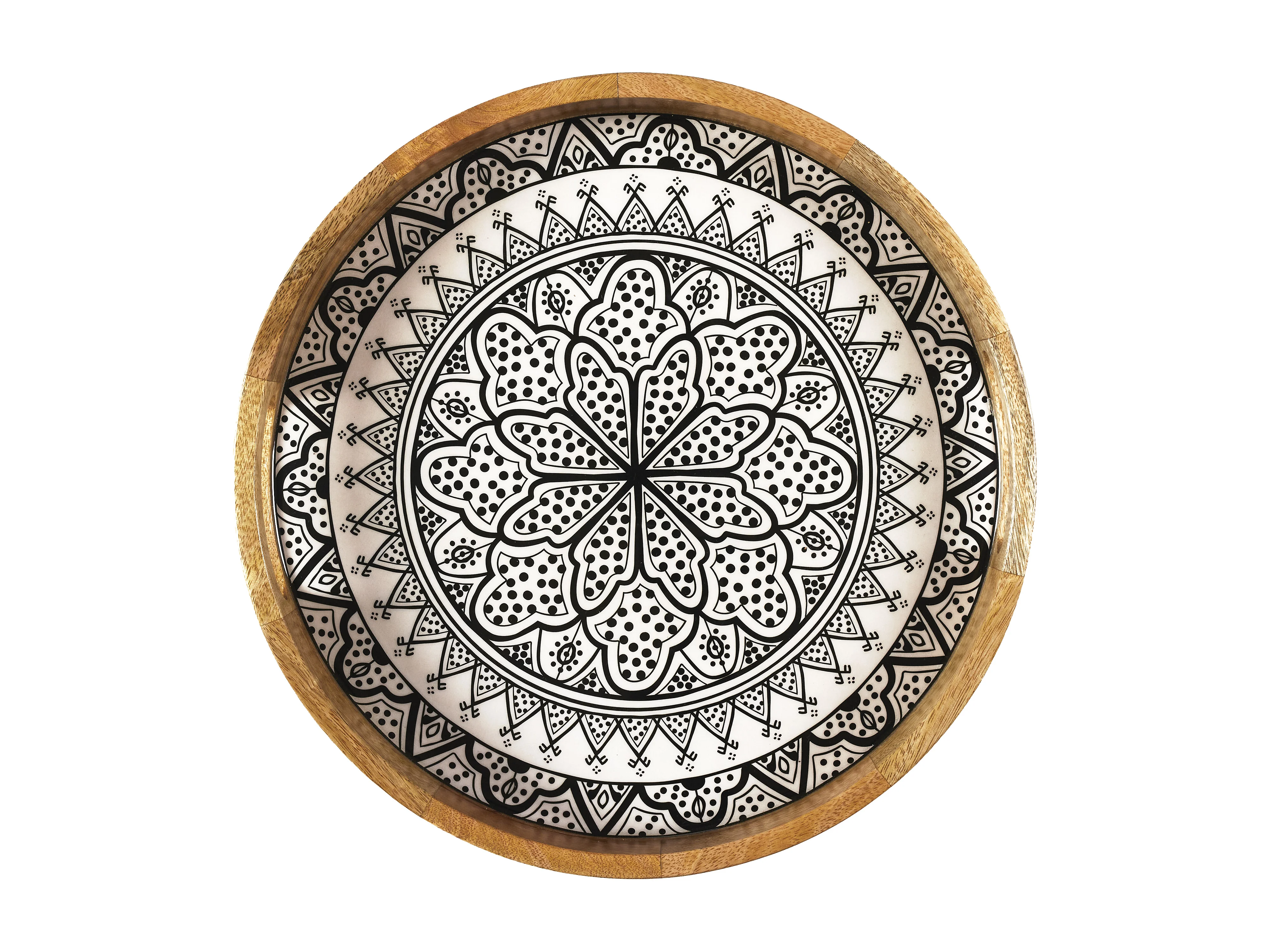 Plateau Rond Manguier Dune Noir D35 Marron, Blanc, Noir