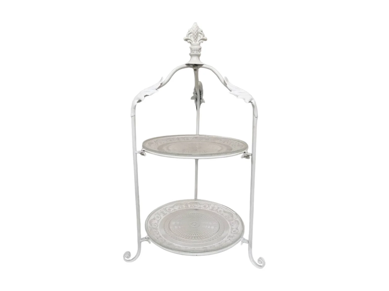 Plat à gâteaux 2 étages en métal et verre blanc Ø.20 x 26 cm
