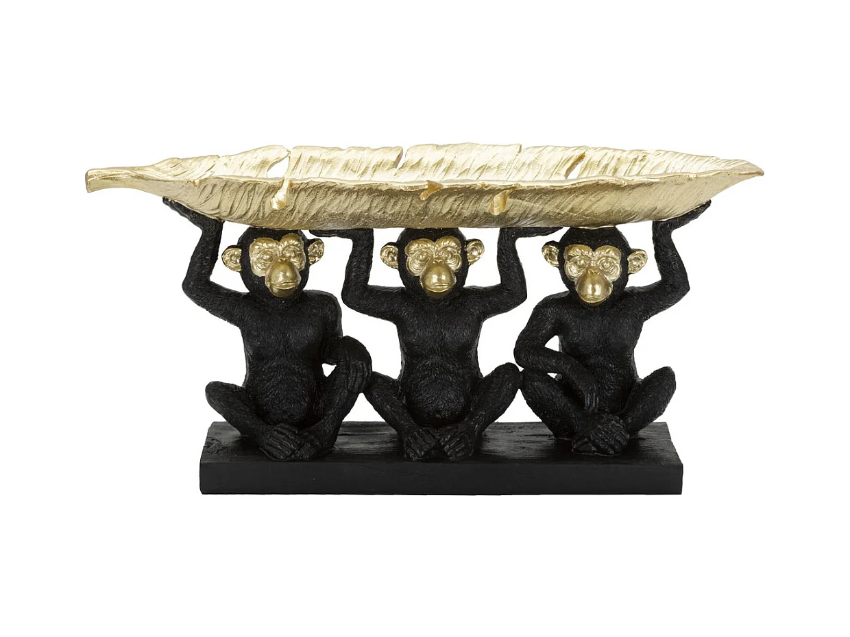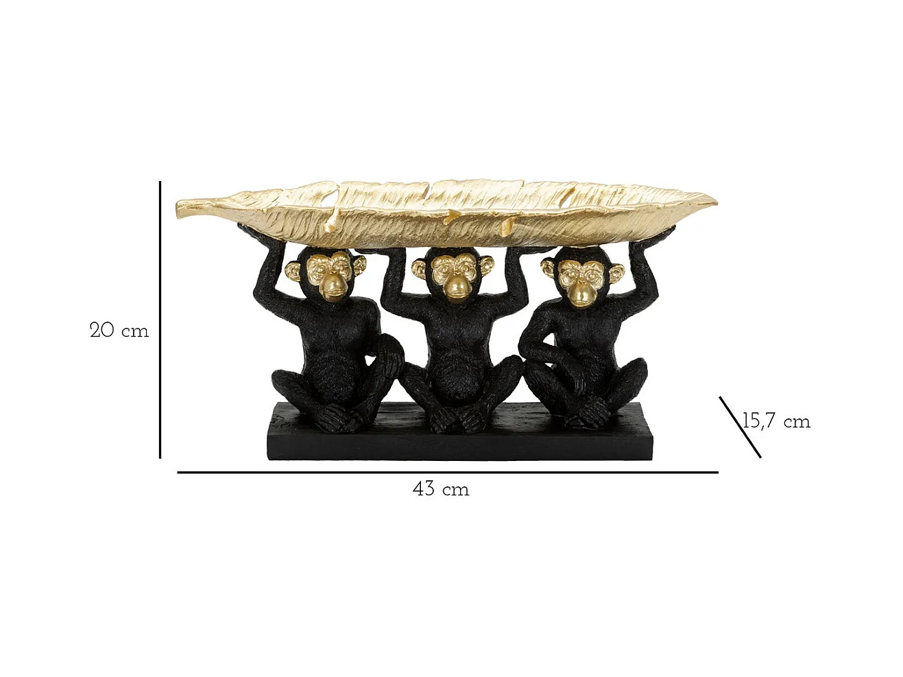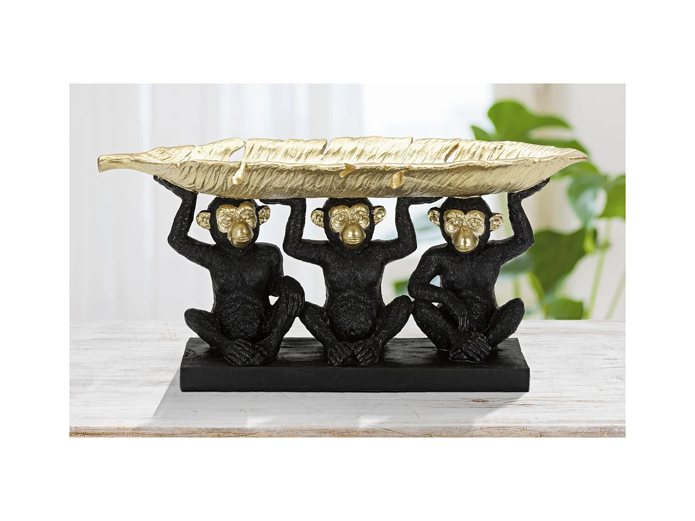 Vide-Poche Statuette "3 Singes" 43cm Noir & Or