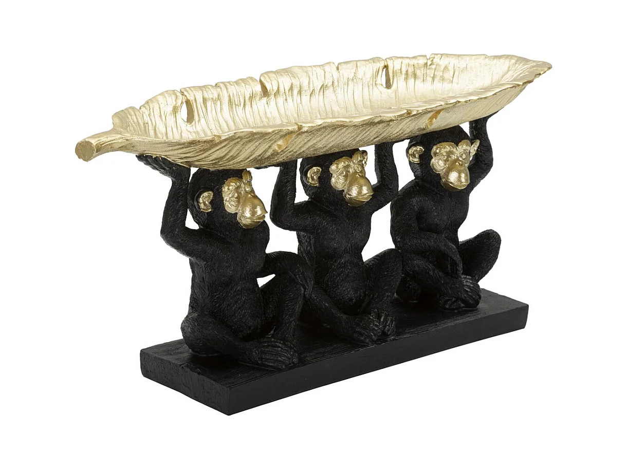 Vide-Poche Statuette "Singe" 25cm Noir & Or