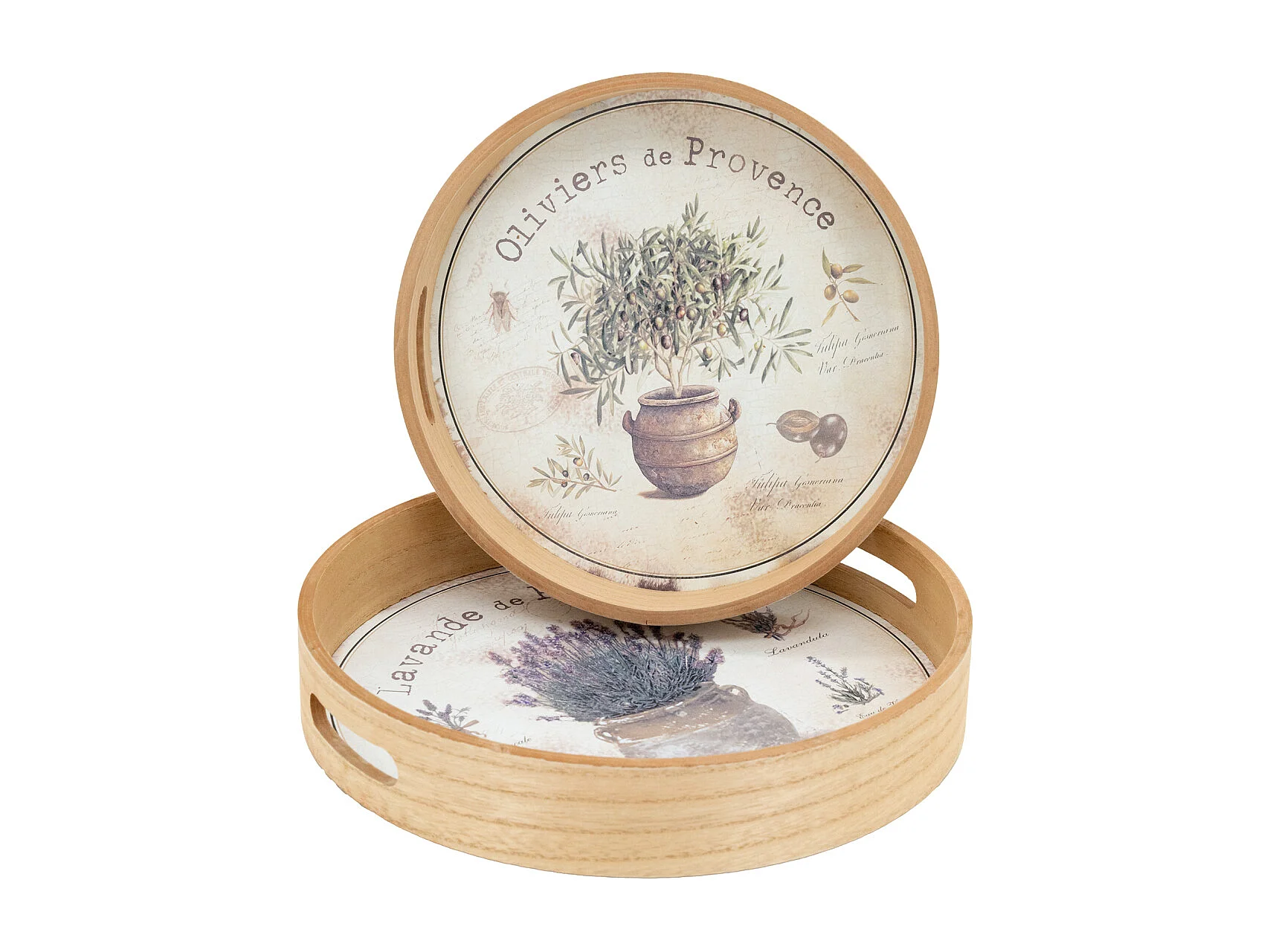Plateau en Bambou Laqué Rond "Bicolore" 42cm Naturel