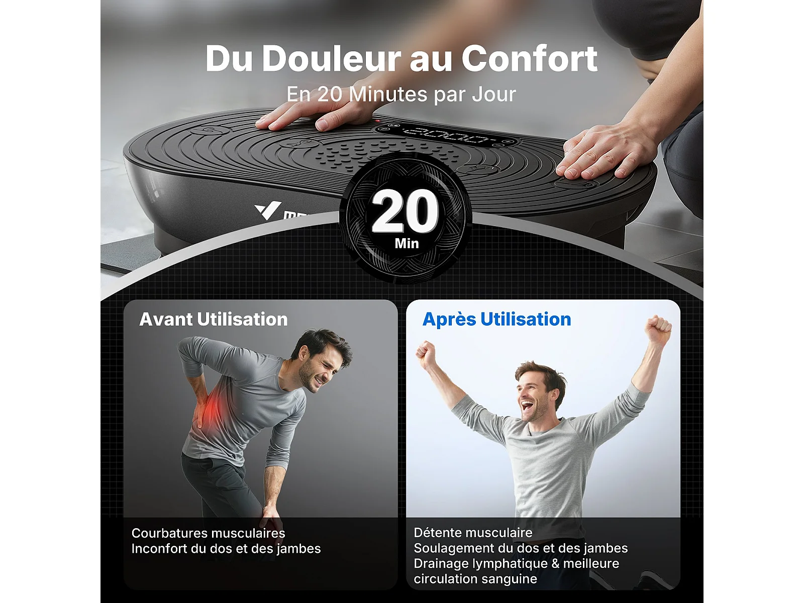 Plateforme Vibrante Noir MERACH avec Télécommande, La Mise en Forme des Muscles, Contrôle Automatique de la Vitesse, Bluetooth Intégré